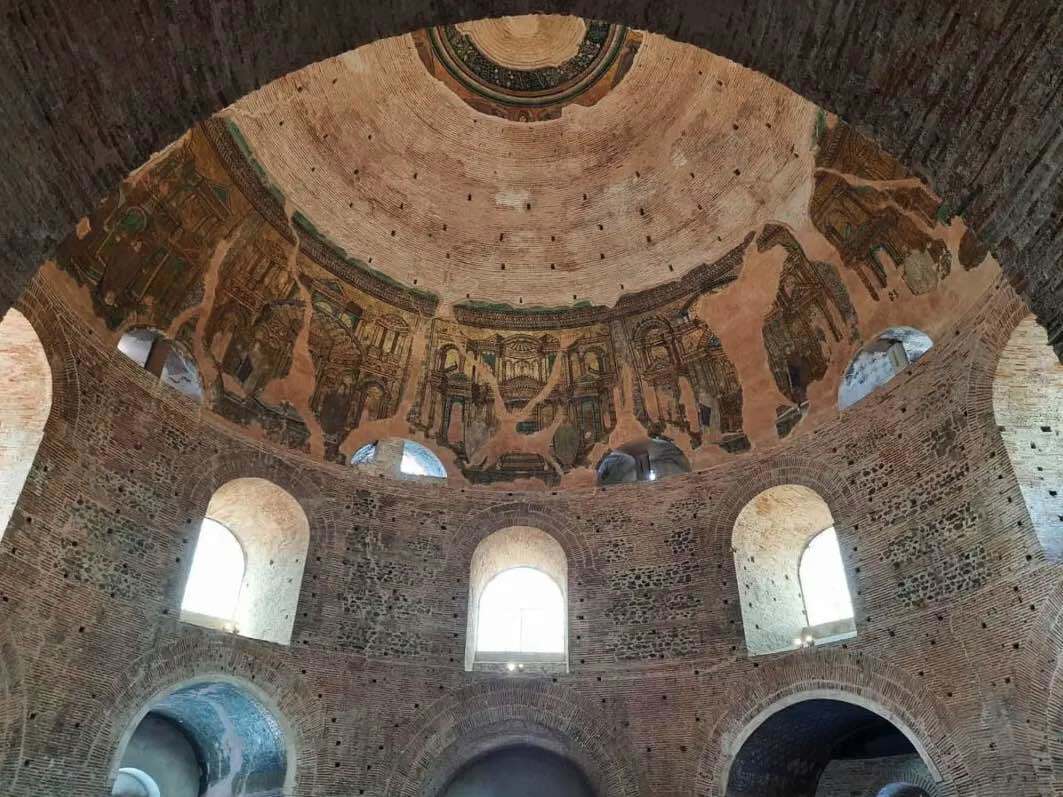 Allargate ora la visuale e scoprirete che il gatto è entrato nella struttura di mattoni che si trova di fronte a voi: 24,5 metri di diametro interno, mura spesse oltre 6 metri e un’altezza di circa 30 metri. È la Rotonda di Galerio, un esempio significativo dell’ingegneria romana tardoantica, ma soprattutto un massiccio simbolo dell’identità di Salonicco. Costruita dall’imperatore Galerio nel 306 d.C., probabilmente per farne il suo futuro mausoleo, divenne la prima chiesa della città quando il Cristianesimo fu dichiarato religione ufficiale dell’Impero romano e fu in seguito trasformata dagli Ottomani in una moschea, come risulta evidente una volta riconosciuto il minareto nella torre di mattoni. Dopo la riconquista greca del 1912, ha avuto vari usi, ma oggi rappresenta un punto di riferimento per la città, circondata da monumenti (tutti a pochi passi l’uno dall’altro) come l’Arco di Galerio, che squarcia la contemporaneità della via Egnatia, l’Agorà romana e la casa di Atatürk, il fondatore della Turchia moderna tra anni ’20 e ’30 del Novecento.