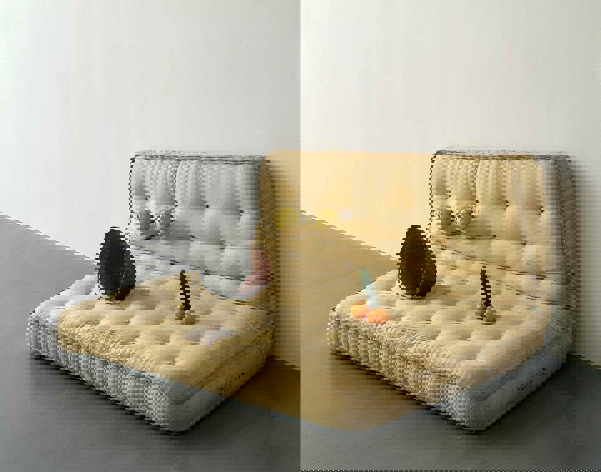 «Il pene mi dà il pane», fa dire Elio a John Holmes a proposito dei «30 centimetri di dimensione artistica» che garantirono il successo a questo celeberrimo collega americano di Rocco Siffredi. Potrebbe dire lo stesso Sarah Lucas (Holloway, Londra, 1962), che sul pene ha costruito tanta parte di una carriera in cui la prima mostra personale, nel 1992 (City Racing, Londra), era eloquentemente intitolata «Penis Nailed to a Board» («Pene inchiodato a un tavolo»). Il membro di una scultura intitolata a Maradona, sintetizzato in una figura gialla come la crema o la buccia di una banana, si ergeva invece per tre metri di altezza all’ingresso del Padiglione britannico, quando Lucas, nel 2015, rappresentò il suo Paese alla Biennale di Venezia.