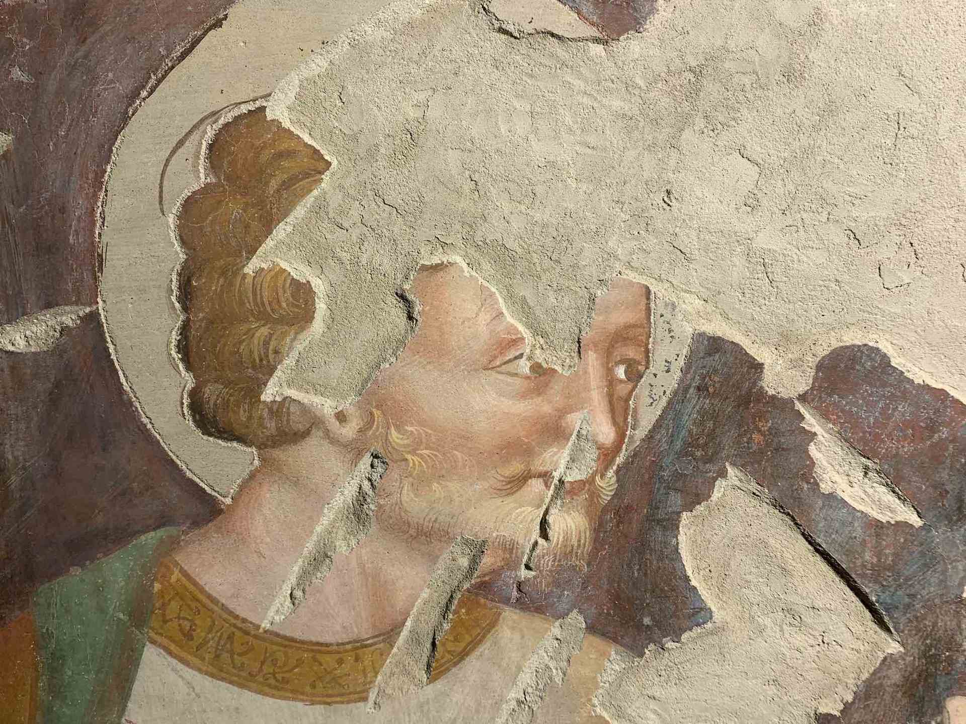 Particolare di una figura di San Bartolomeo tra gli affreschi che sono stati recentemente scoperti a Soliera