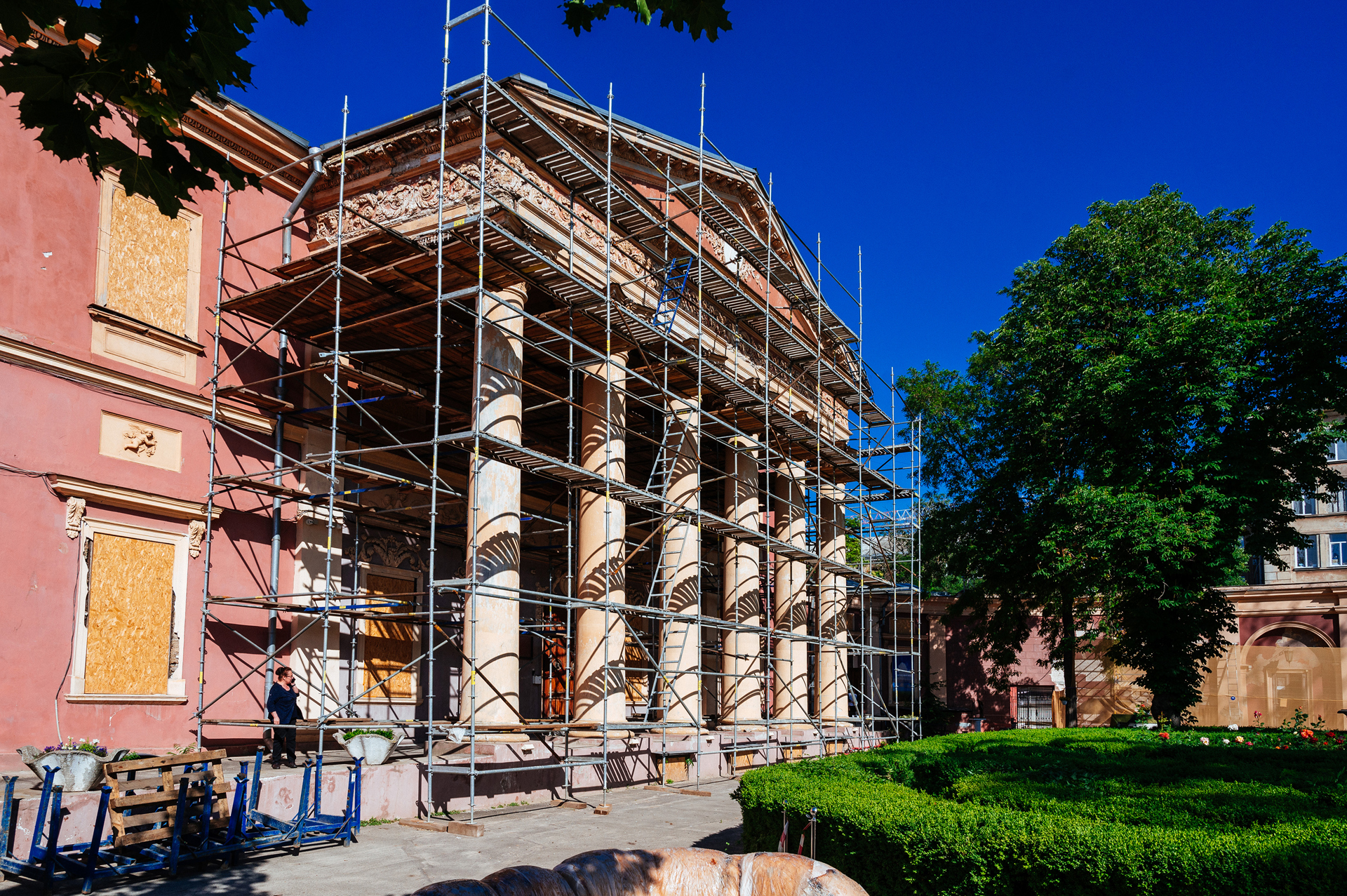 Il consolidamento e la protezione del Museo Nazionale delle Belle Arti di Odessa in Ucraina, danneggiato dalle forze russe. © Ivan Strakhov
