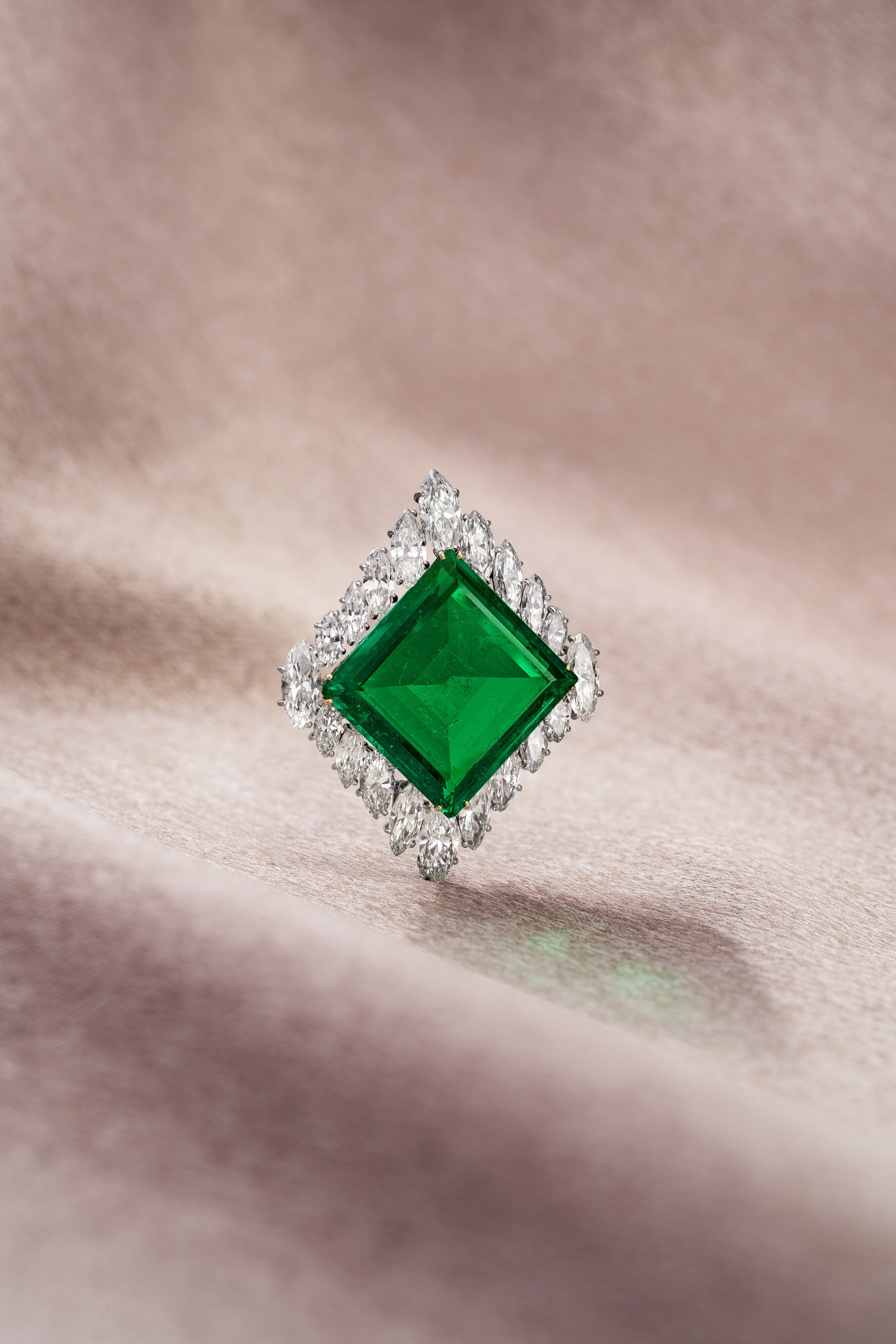 Lo smeraldo del principe Aga Khan, venduto a 7,8 milioni di franchi svizzeri. Cortesia di Christie’s Images Ltd. 2024