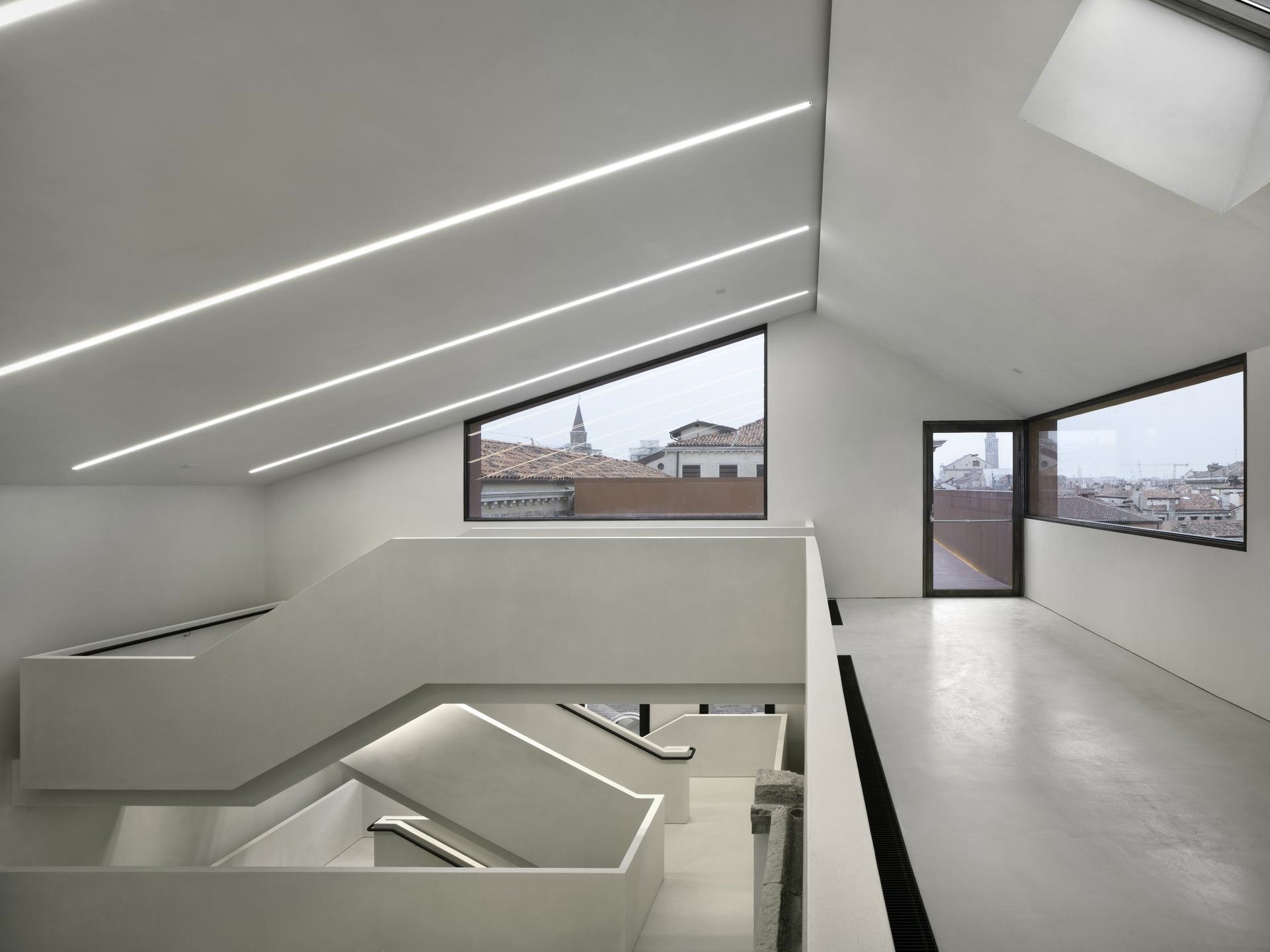 Le 16 sale dello spazio espositivo sono disposte lungo un corridoio che si estende lungo 80 metri. Ben 58 finestre si affacciano sulla piazza simbolo di Venezia, con un'altezza dei soffitti di 4,5 metri per ogni sala. All'edificio si accede da Piazza San Marco 105, attraverso Corte Maruzzi, un cortile privato che conduce a una scala monumentale. Il programma inaugurale prevede, dal 9 maggio, una duplice proposta espositiva che si allinea con la 19. Mostra Internazionale di Architettura: «Migrating Modernism. The Architecture of Harry Seidler» dedicata alla figura del progettista austriaco Harry Seidler (Vienna, 1923-Sydney, 2006), primo esponente dei principi del Bauhaus in Australia e «For All That Breathes On Earth: Jung Youngsun and Collaborators» che, in collaborazione con il Museo Nazionale d'Arte Moderna e Contemporanea di Seul-Mmca, vede protagonista l’architetta paesaggista coreana Jung Youngsun.