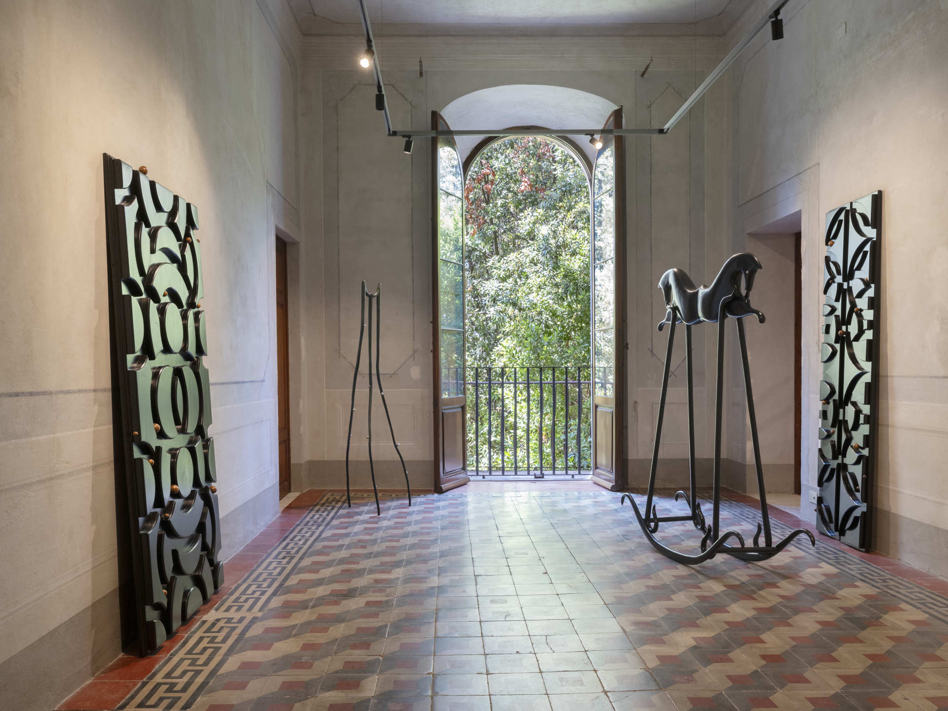 Foto dell'installazione di Mathilde Albouy a Villa Versiliana (organizzata dalla Fondazione Versiliana e Umberta Gnutti Beretta, a cura di Sofya Simakova ed Eduardo Monti), 2025