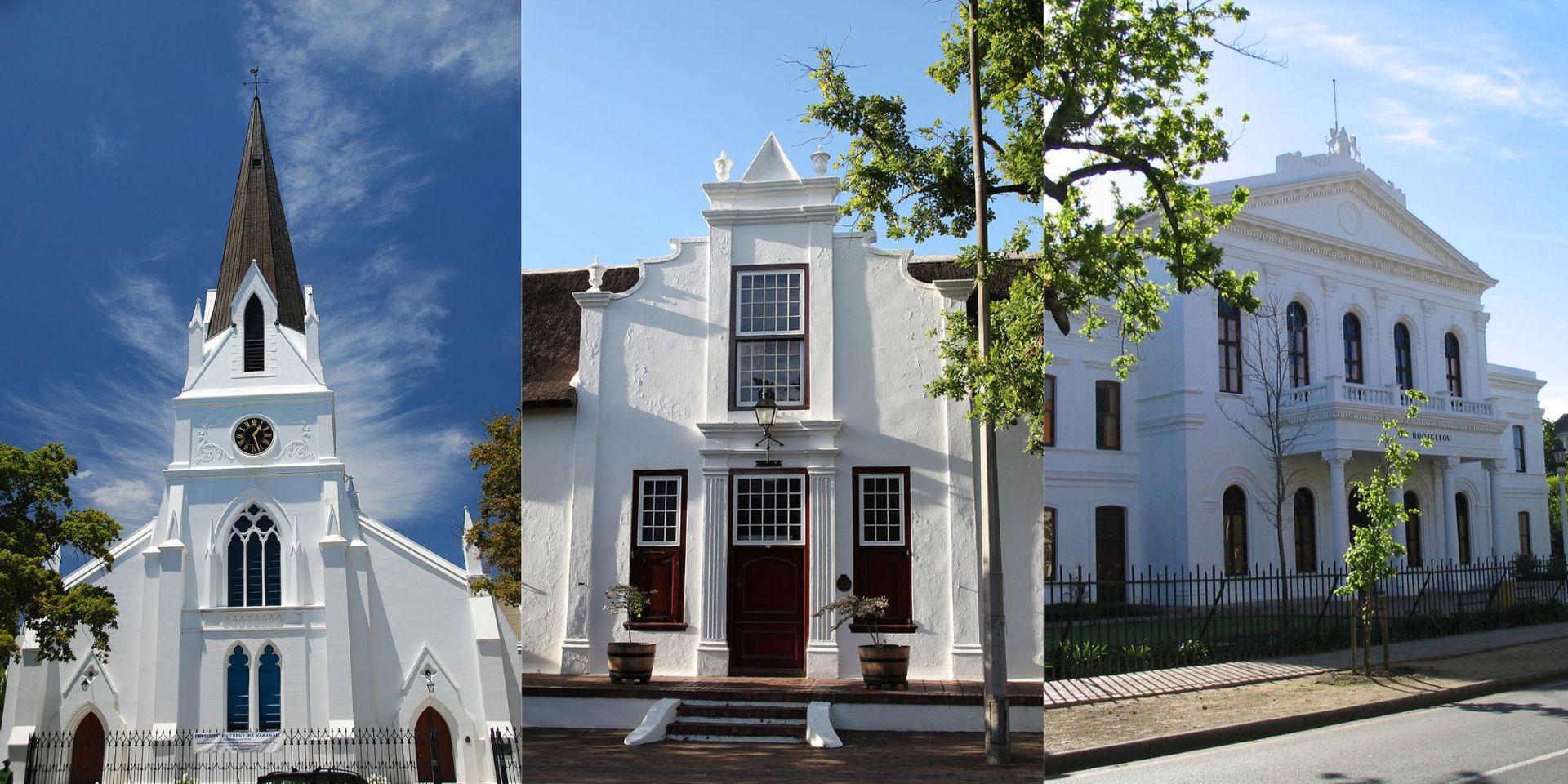 Stellenbosch, fondata nel 1679 dal secondo governatore della Provincia, Simon van der Stel (1639-1712), da cui prese il nome, divenne rapidamente il centro più importante della regione e successivamente anche un centro universitario e un bastione del nazionalismo afrikaaner nel XX secolo, fino alla fine del regime dell’apartheid. La città è famosa per i suoi edifici nello stile olandese del Capo e per la bellezza dei paesaggi vinicoli che la circondano. I principali edifici di stile olandese, e in alcuni casi vittoriano, sono la vecchia Chiesa luterana del 1851, la «Kolonieshuis» (la Casa della Gratitudine) del 1798, l’edificio Libertas-Parva (1783) che ha oggi un importante Museo del Vino, la sede dell’Università. Al centro della città si trovano la «Braa», una verde spianata che veniva un tempo utilizzata per le parate militari, con ai bordi la chiesa neogotica Moederkerk, emblema della città, oltre a edifici residenziali in stile olandese, la Hoofgebau, l’Arsenale, la Chiesa anglicana di St Mary (1852). L’edificio Grosvenor (1786) ospita il Museo Villaggio di Stellenbosch, che raggruppa un insieme di case in stile olandese dal XVII al XIX secolo, di grande interesse. Oggi Stellenbosch è considerata un patrimonio importante del Paese, perché riflette la controversa vicenda coloniale ed è espressione della diversità culturale generata dall’interazione di popoli di origini diverse.