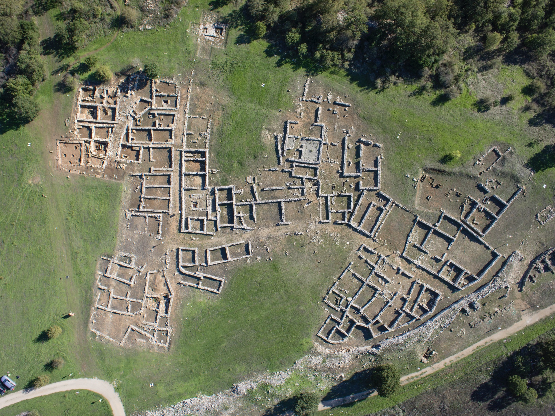 Numerosi anche i resti funerari collocati non lontano dalle zone destinate alle abitazioni e, nel caso di bambini o neonati, anche all’interno delle case stesse come da consuetudine degli Iapigi. Nella suggestiva acropoli, numerose tombe monumentali dalle pareti affrescate e tracce di edifici destinati al culto e alla vita pubblica. Ed è proprio qui, sulla sommità della collina, che nell’ultima campagna di scavo (autunno 2024) una scoperta significativa ha destato l’attenzione della comunità scientifica: «Abbiamo ritrovato in un’area al margine nordoccidentale dell’acropoli un grosso complesso produttivo oleario databile fra la seconda metà del III e la fine del II secolo a.C., composto da quattro ambienti in stretto collegamento funzionale attraverso la presenza di una canalizzazione, dichiara Paola Palmentola. La pulitura, la molitura e la spremitura delle olive dovevano avvenire in un grande spiazzo, cinto da zoccoli murari, ma privo di muri in elevato e dunque anche di tetto».
