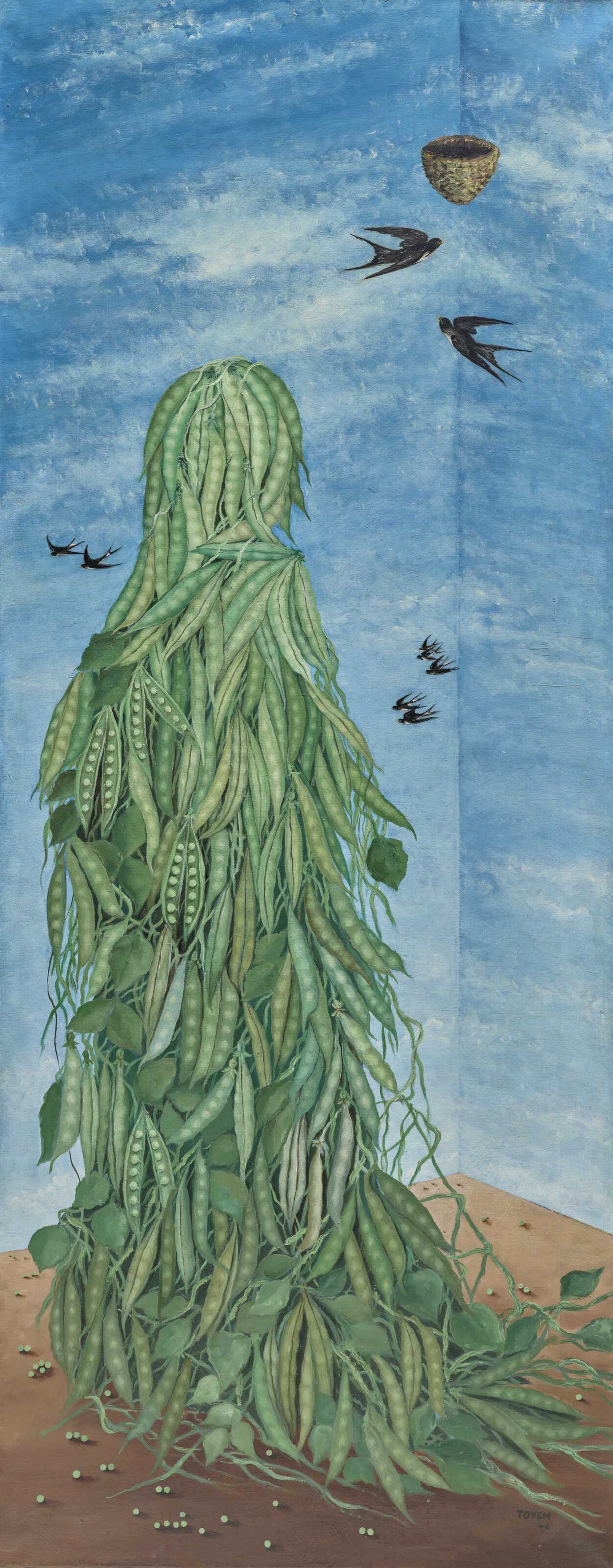Sì, il titolo può essere letto sia in chiave poetica sia come dichiarazione politica implicita. L’opera fu realizzata nel 1946, subito dopo la fine della Seconda Guerra Mondiale, in un contesto in cui Toyen aveva appena concluso sei anni di clandestinità sotto l’occupazione nazista. Il dipinto, con la sua vegetazione rigogliosa che sembra prendere il sopravvento sullo spazio domestico e la figura ibrida nascosta tra piante e verdure, suggerisce una tensione verso la rinascita. L’atto stesso di creare l’opera dopo anni di repressione costituisce un gesto di resistenza e riaffermazione dell’autonomia personale e artistica.