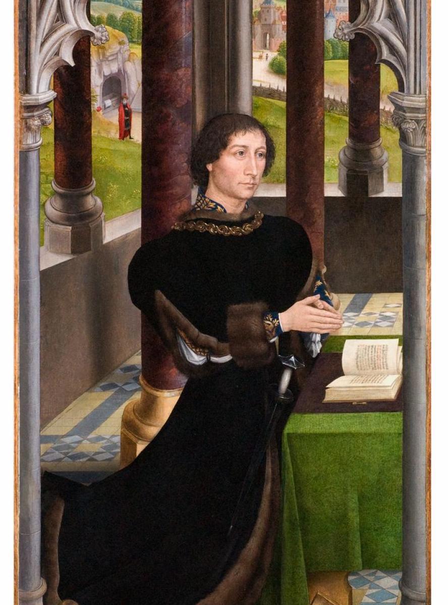Hans Memling, «Ritratto di un membro della famiglia De Rojas, inginocchiato» (1460-1470). © Musea Brugge-Sarah Bauwens