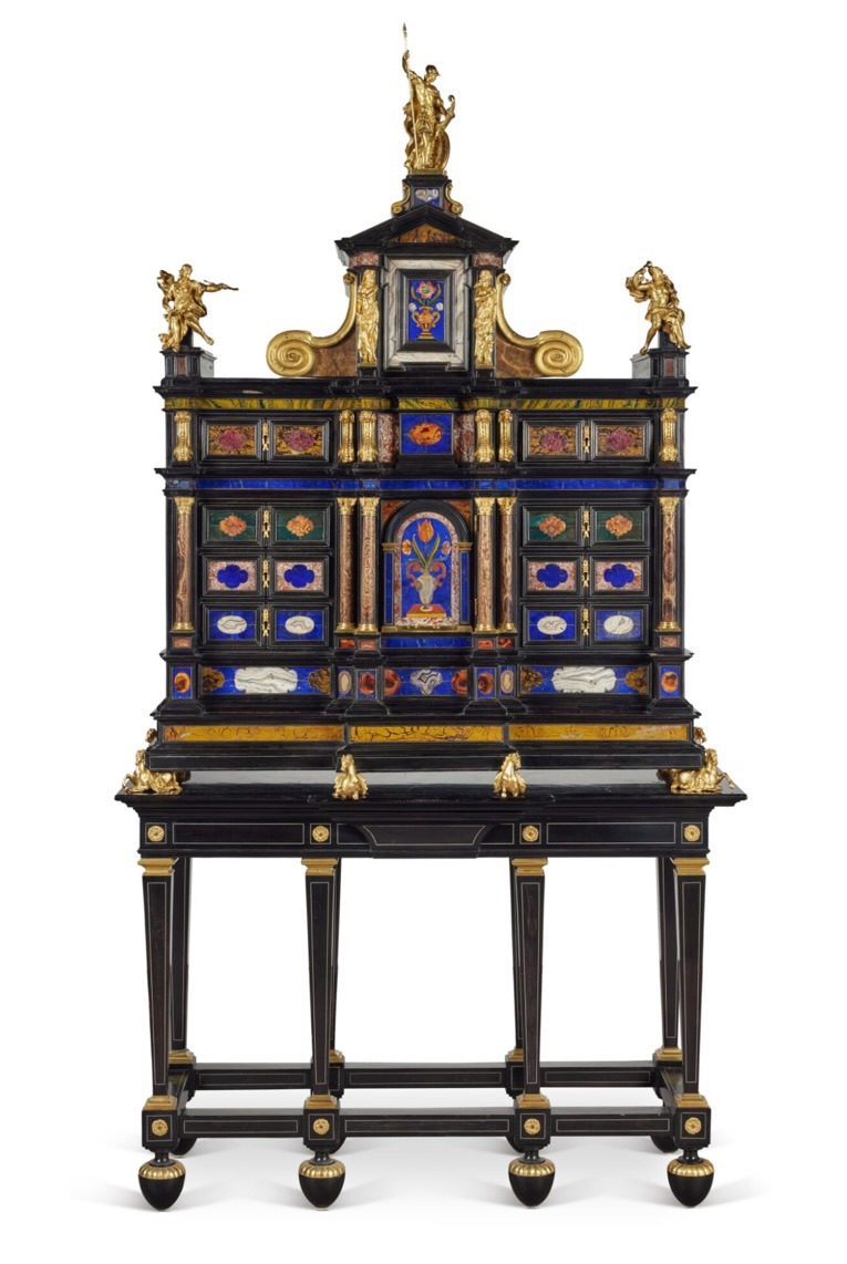 Armadio italiano in bronzo dorato e pietre dure intarsiate in ebano, Roma, seconda metà del XVII secolo. Cortesia di Sotheby’s