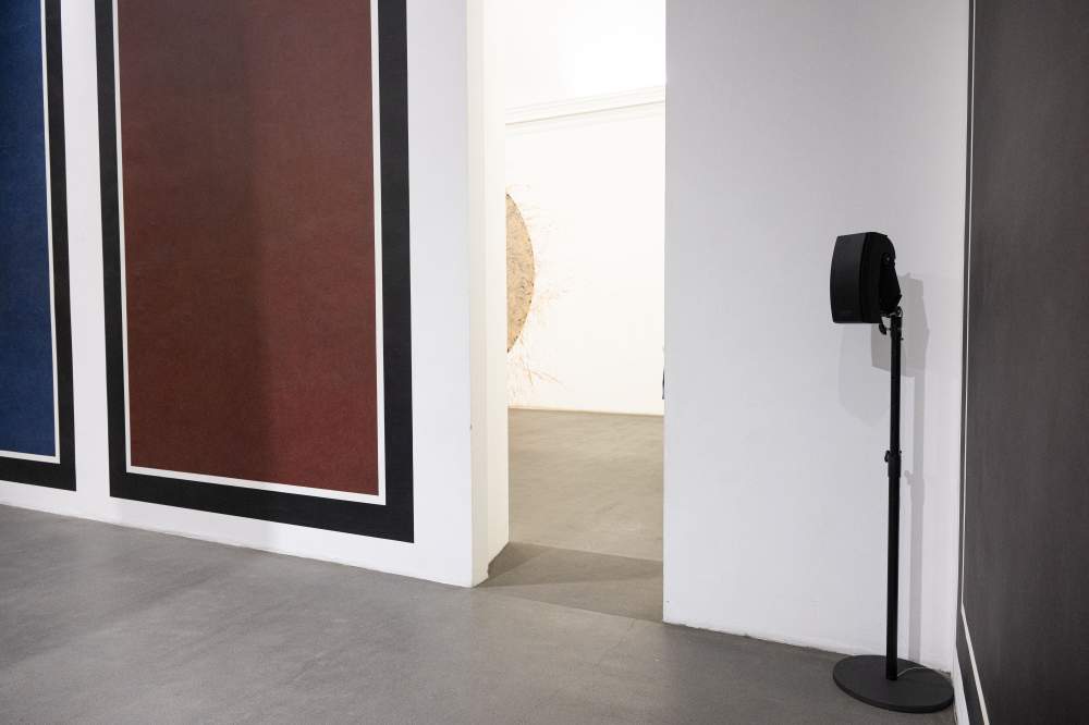 Dai giardini esterni alle sale espositive, i lavori dialogano direttamente con l’ambiente del Castello, con le sue architetture e funzioni sociali, analizzandone soprattutto le sonorità peculiari. Fin dall’esterno, nel grande atrio d’ingresso dov’è ospitato «Untitled» (1995), il place work del pioniere del genere Max Neuhaus, opera sonora realizzata in specifica relazione con il progetto juvarriano, e nei giardini dove si diffonde la cantilena sognante di «Sun & Sea listening edition» (2022) di Rugilė Barzdžiukaitė, Vaiva Grainytė e Lina Lapelytė, edizione da ascolto della performance vincitrice del Leone d’Oro alla 58ma Biennale di Venezia presentata al Castello in occasione della mostra «Espressioni con Frazioni». E ancora, alla scala d’accesso al Museo con il richiamo nostalgico diffuso dagli altoparlanti di «The Internazionale» (1999) di Susan Philipsz, canto a cappella che riproduce l’inno del movimento socialista. L’artista scozzese esplora le potenzialità scultoree del suono non solo nelle sue qualità aurali, ma anche tattili, sotto forma di vibrazione, generando reazioni diverse per ciascun visitatore.