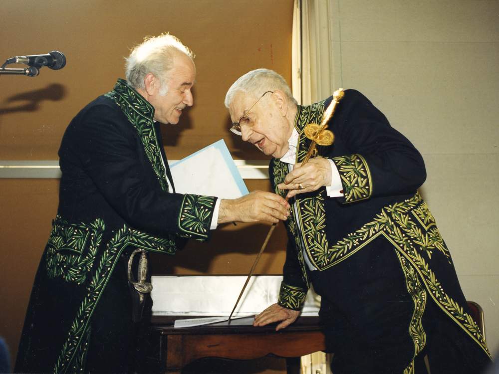 Quando lo storico dell'arte italiano fece il suo ingresso tra gli immortali di Francia, il presidente direttore del Louvre gli consegnò lo spadino di Accademico con questo ritratto impertinente