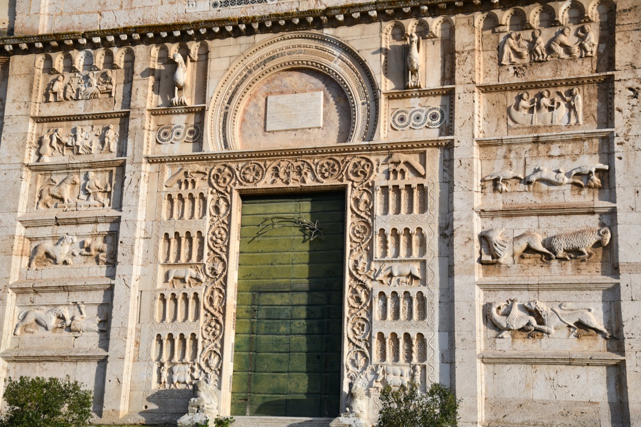 San Pietro extra moenia a Spoleto, particolare della decorazione della facciata. Foto Barbara Antonetto