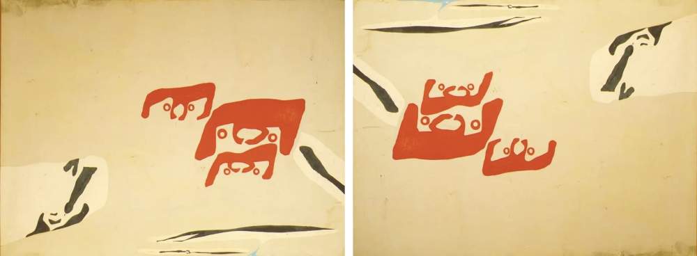 Quando la Tate la comprò, nel 1970, la coppia di dipinti di «Black on Maroon» di Rothko fu appesa in orizzontale, una scelta dettata dal verso in cui l’artista aveva apposto la propria firma sul retro delle tele. Nove anni dopo però, in seguito a una nuova esposizione, i curatori cambiarono idea e allestirono le due versioni di «Black on Maroon» in verticale. Nel 1987 si tornò a un’esposizione orizzontale, quindi di nuovo a quella verticale. I Rothko sono appena stati messi in vendita, ma sul sito web della Tate entrambi compaiono ancora nella versione in verticale.