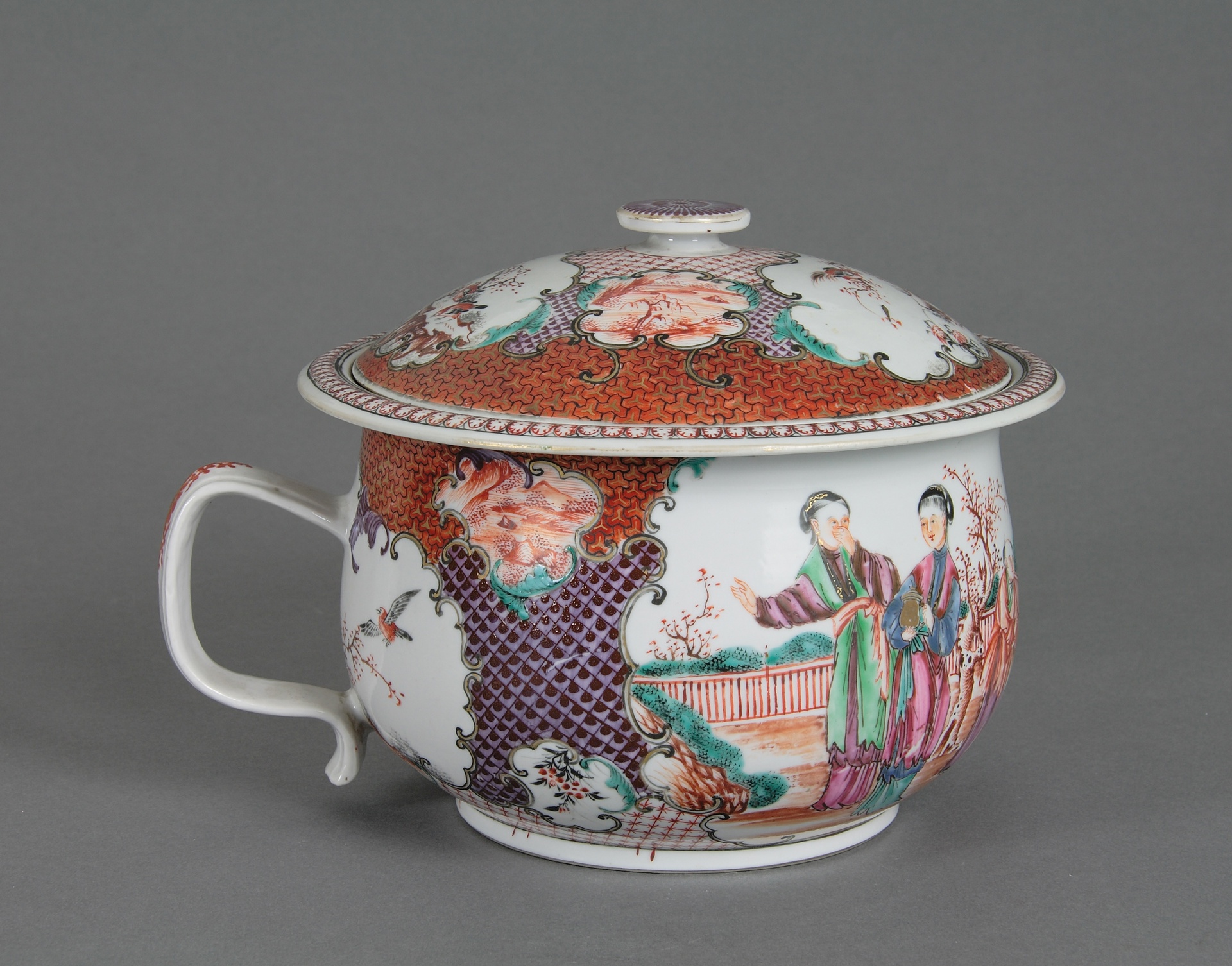 Vaso da notte con scene figurate, Cina, Jingdezhen (porcellana), Guangzhou (decorazione), fine XVIII secolo, acquisizione Istituto Vendite Giudiziarie, 1967