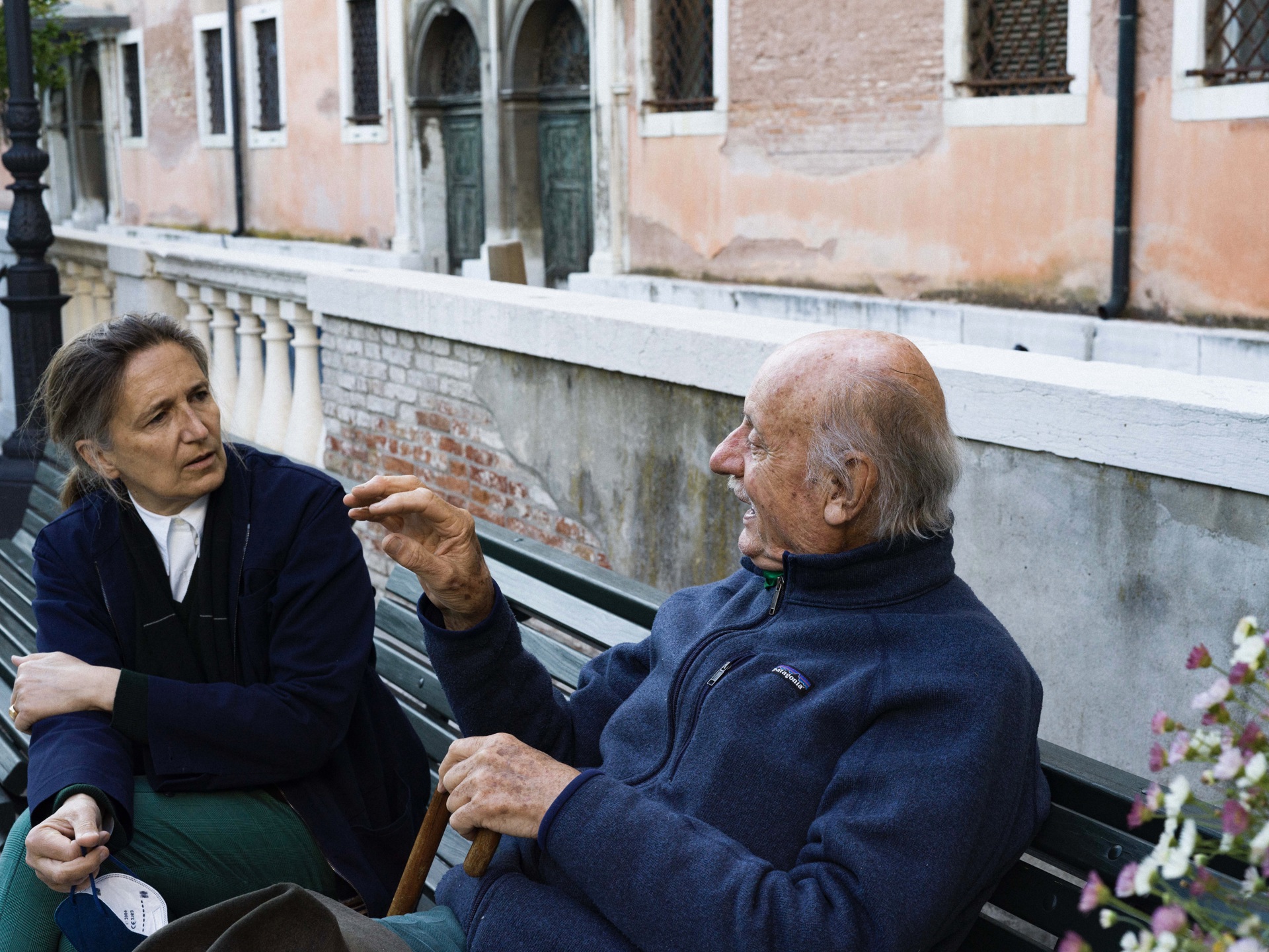 Adele Re Rebaudengo, presidente di Venice Gardens Foundation, e l’architetto Paolo Pejrone a Venezia. Foto Carlo Soffietti