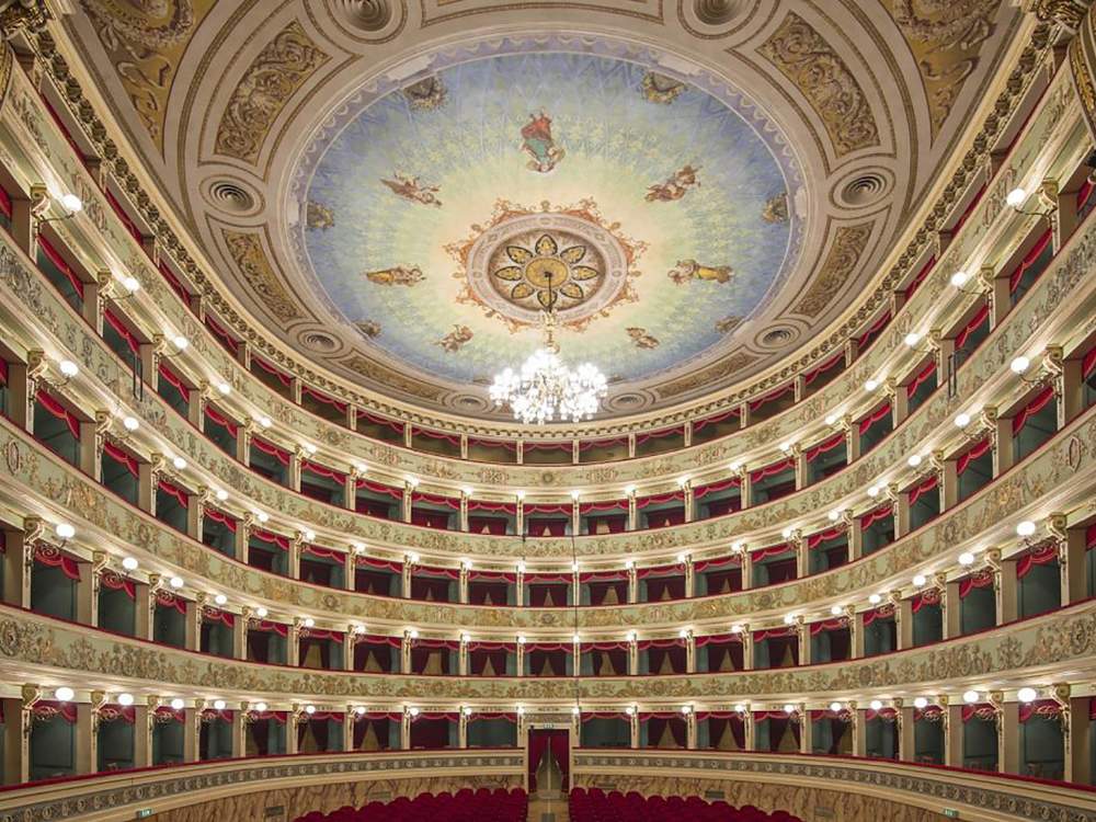 La designazione di Pesaro Capitale italiana della Cultura 2024 è un buon motivo per far partire il percorso dalla patria di Gioachino Rossini. Capoluogo che possiede la cultura operistica nel sangue, «Città creativa della musica» per l’Unesco grazie all’importantissimo lavoro portato avanti con il Rossini Opera Festival e il suo Conservatorio, Pesaro vanta una delle Pinacoteche più interessanti dell’Italia centrale dove, accanto alla celebre «Pala dell’Incoronazione della Vergine» di Giovanni Bellini e alla «Caduta dei Giganti» di Guido Reni, si annoverano le famose maioliche cinquecentesche provenienti dai maggiori centri rinascimentali della provincia. Tornando al Teatro Rossini, questo viene inaugurato come Teatro del Sole nel 1637, durante il pontificato di Urbano VIII che concede le vecchie scuderie ducali costruite da Federico Ubaldo Della Rovere. L’edificio deve una vera e propria ricostruzione all’architetto Pietro Ghinelli tra il 1816 e il 1818, anno in cui è nuovamente inaugurato con una eccezionale rappresentazione de «La gazza ladra» diretta dallo stesso Rossini, già celebre anche se appena ventisettenne.