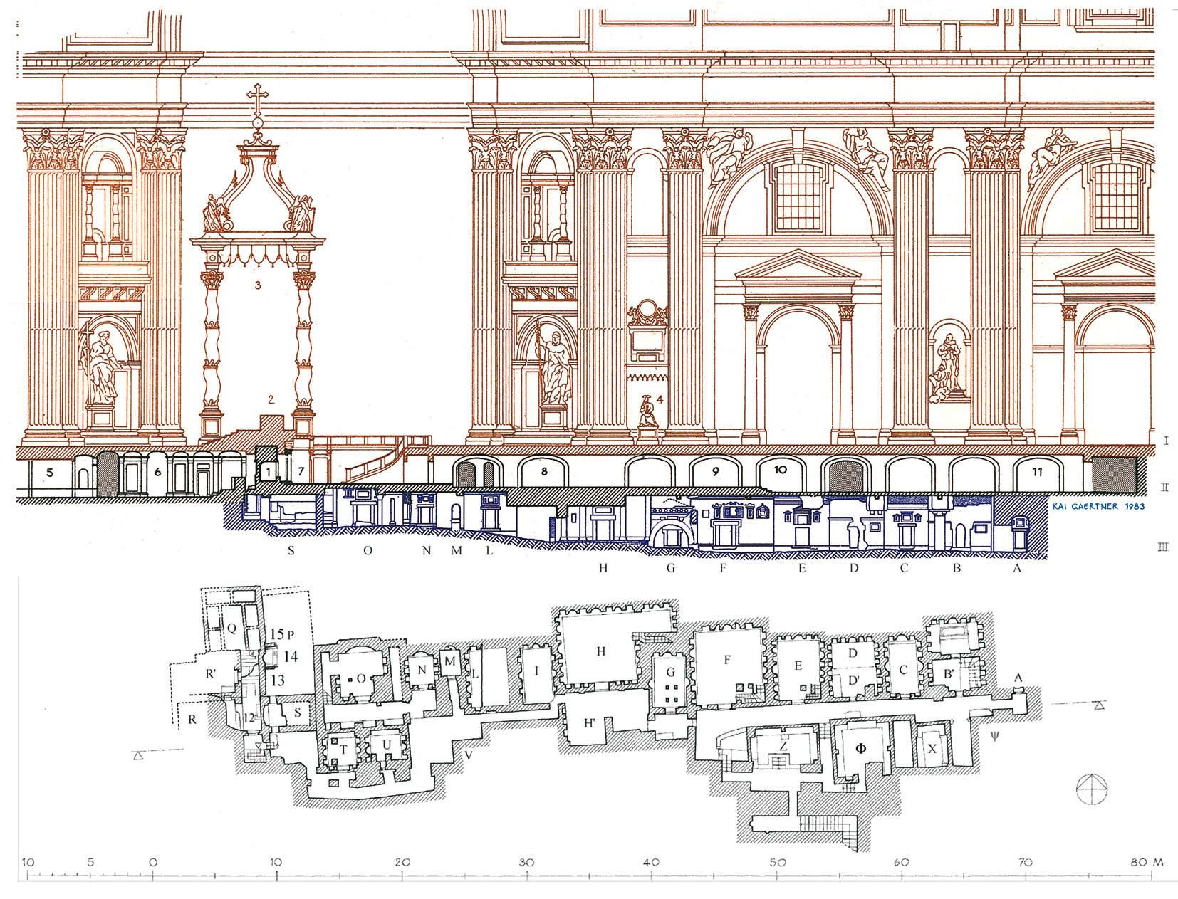 Pianta della Necropoli e sezione della basilica di San Pietro. © Fabbrica di San Pietro in Vaticano