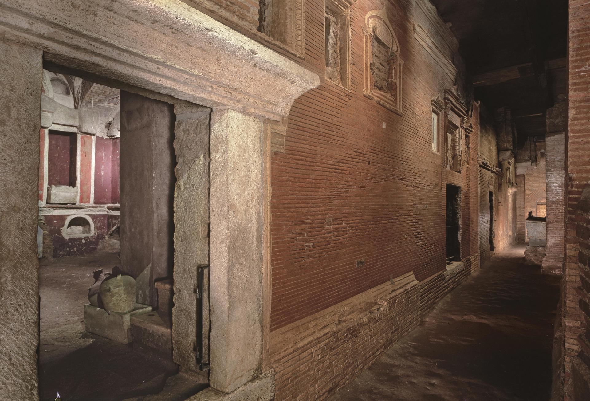 Procedendo, si aprono strade e vicoli, su cui si affacciano tombe a pianta rettangolare, con porte e finestre, a volte un terrazzo e un recinto antistante. Le facciate sono in laterizi rossi o gialli e, all’interno, le decorazioni si compongono di magnifici stucchi, affreschi, sculture. «Dobbiamo compiere uno sforzo di immaginazione, e pensare questo luogo non ipogeo, ma all’aperto, con le finestre dei sepolcri che si aprivano verso il paesaggio. Come possiamo vedere ancora oggi, ad esempio, nella Necropoli di Porto all’Isola Sacra, a Fiumicino. Chi poteva permettersi tombe di tale pregio? I liberti imperiali, gli imprenditori del mondo antico. Grazie alle iscrizioni, ai ritratti e all’apparato decorativo, leggiamo le loro storie e conosciamo i loro volti, ricostruendone la vita e le occupazioni, come nel caso della famiglia dei Matucci, che commerciava stoffe».