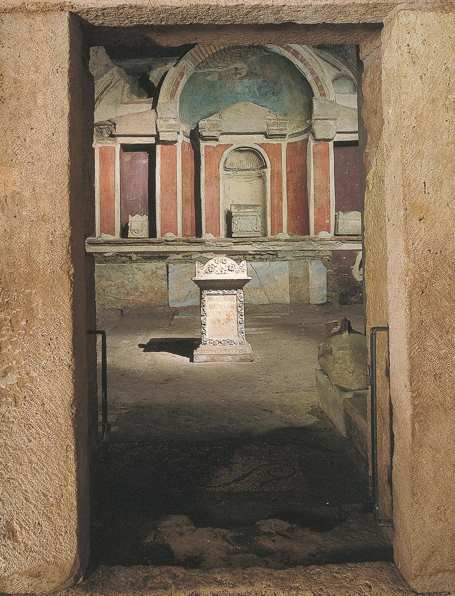 Raffinatissime sono le decorazioni in cotto della facciata della Tomba F, dei Caetenni e dei Tulli (scoperta nel 1941 e restaurata nel 2000) che, all’interno, presenta un’elegante architettura scandita da elementi curvilinei e rettilinei: nicchie, timpani, colonnine. Altrettanto eleganti sono, nella Tomba E, degli Aelii, quattro urne in alabastro, lussuosi oggetti di importazione, da Alessandria d’Egitto, giunti a noi perfettamente integri. «L’analogia per lo stato di conservazione della Necropoli si pone con Pompei, lì i lapilli hanno sigillato le grandi ville sotto la cenere, qui tutto è rimasto sigillato sotto l’interramento costantiniano. È un contesto assolutamente intatto».