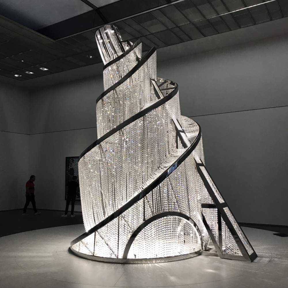 32.400 gocce di cristallo compongono «Fountain of Light», la ricostruzione su oltre 4 metri di altezza del «Monumento alla III Internazionale» come lanterna cinese galleggiante commissionata dal Louvre Abu Dhabi nel 2016 e prima, nel 2007, dalla Tate Liverpool; 150 tonnellate di tondini d’acciaio arrugginiti, recuperati dalle macerie, sono affastellati a terra a simulare un’onda sismica per commemorare la tragedia di Sichuan («Straight», 2008-12), cui sono riferiti anche i 360 zainetti scolastici che cuciti insieme formano il serpentone in memoria dei ragazzi morti in quel disastro (ma a Monaco, in un’installazione sulla facciata della Kunsthaus, gli zainetti erano 9mila).