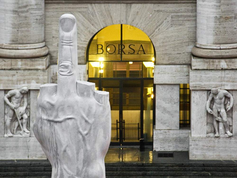 «L.O.V.E.» (2010), Piazza degli Affari, Milano. Foto Zeno Zotti