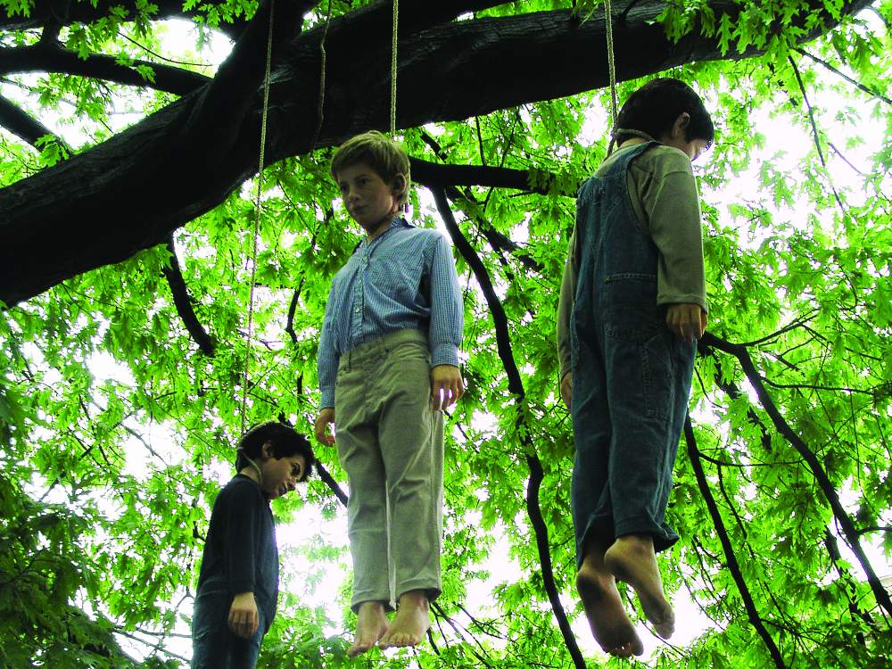 «Depressione, sfiducia, sconforto, frustrazione, perdita della gioia di vivere (...) Sensi di colpa, rimorsi: paura di essere giudicati, desiderio di cancellare alcuni aspetti di se stessi che risultano angoscianti e opprimenti. Dipendenza affettiva, madre castrante». Il più famoso cultore dell’impiccagione nell’arte contemporanea è Maurizio Cattelan. Forse la psicanalisi (magari d’accatto: a lui piacerebbe molto), che attribuisce a chi sogna persone impiccate i sentimenti sopra elencati potrebbe rivelare lati davvero sorprendenti dell’inconscio di un artista che, da ciò che fa e dice, non sembrerebbe così frustrato o afflitto da sensi di colpa. La mania dell’impiccare o dell’appendere qualcuno o qualcosa a una corda si manifesta periodicamente nella sua produzione a partire dal 1996, quando fa imbalsamare un cavallo e lo appende al soffitto, intitolando l’opera «The Ballad of Trotsky» e in un’altra versione, «Novecento» (in cui l’animale appare con le zampe mostruosamente allungate) conservata al Castello di Rivoli.
