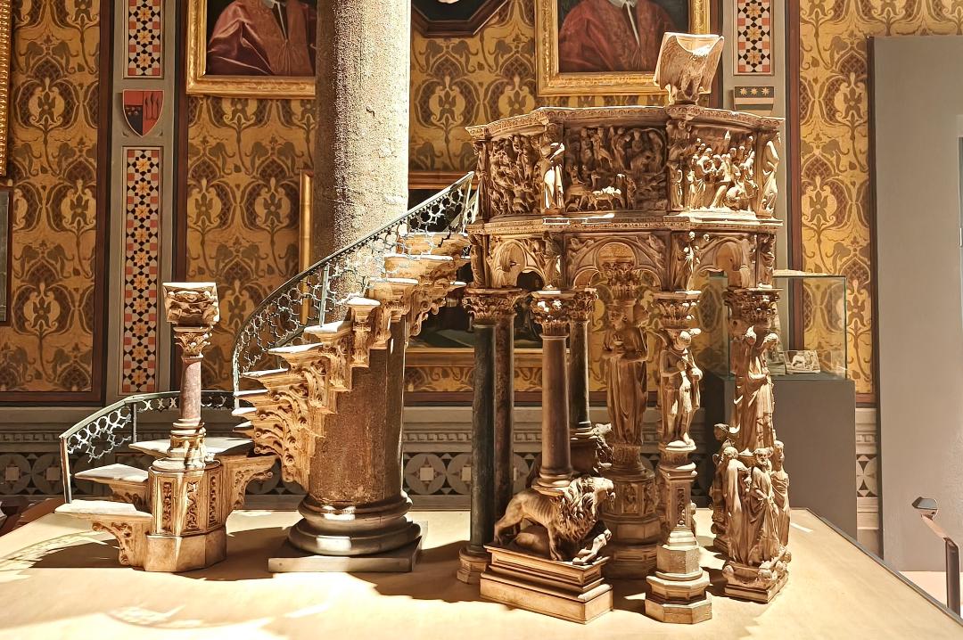 Una mostra intreccia la storia del faticoso riassemblaggio del pergamo, una delle pietre miliari della scultura medievale, e quella, altrettanto lunga, complicata e alterna, del riconoscimento della grandezza del suo autore