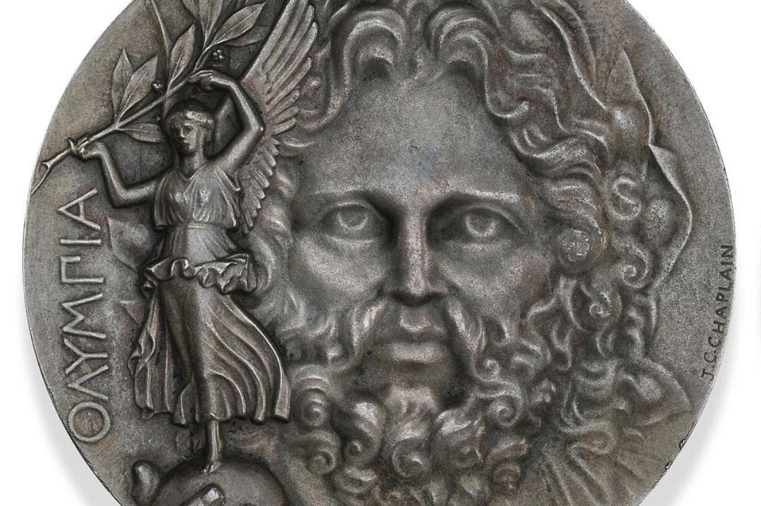 Battuta dalla casa d'aste danese Bruun Rasmussen, la medaglia presenta sul dritto il volto solenne di Zeus che regge la dea Nike con un ramo d'ulivo, mentre sul rovescio spicca l'Acropoli di Atene con il Partenone