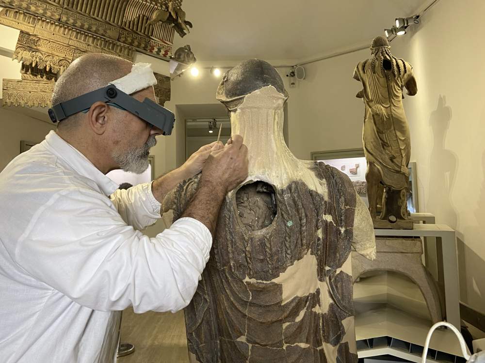 Tuccio Sante Guido illustra il restauro della scultura che svettava in cima al Tempio di Portonaccio a Veio