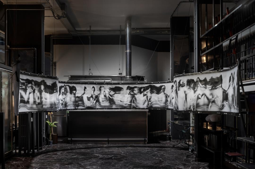L’immagine, 80 cm per quasi 11 metri di lunghezza, è nata dal movimento di una ballerina rimasto impresso sulla pellicola di una delle macchine sperimentali costruite dal fotografo