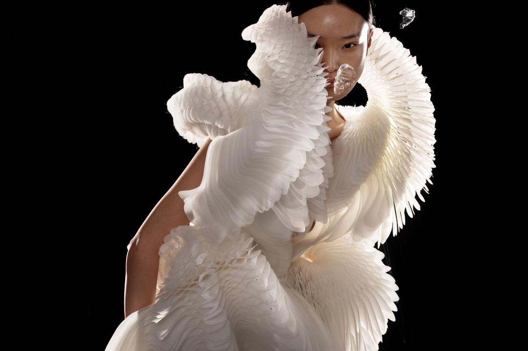 La mostra «Sculpting the Senses» al Brooklyn Museum presenta oltre 140 creazioni di haute couture di Iris van Herpen, esplorando il legame tra natura, corpo e tecnologia attraverso materiali innovativi, movimento e design sperimentale