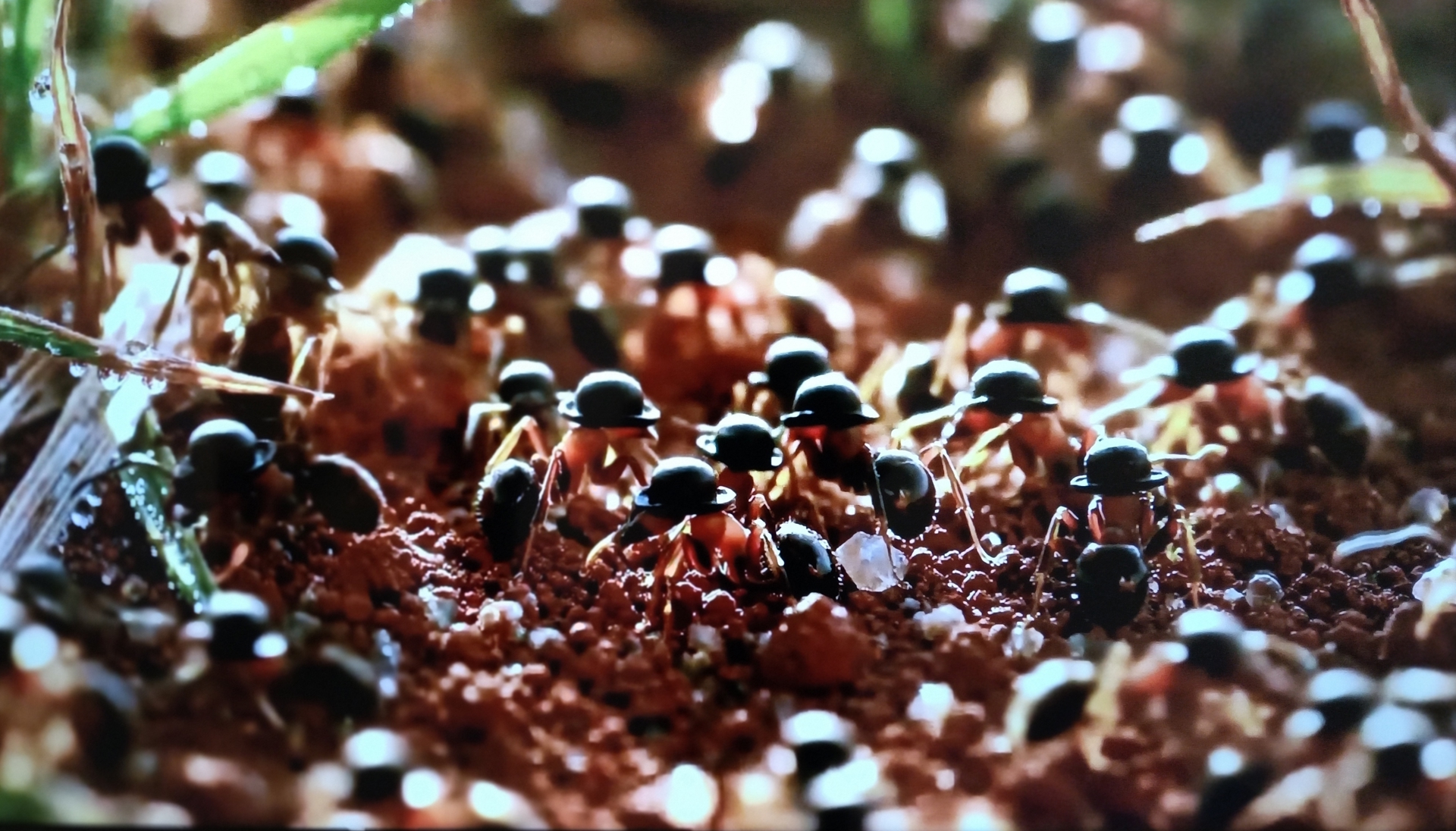 L’io narrante della novella indica alla sua compagna di viaggio, oltremodo incredula dei motivi di un simile attaccamento, che «per poter comprendere siffatta caparbietà, che è per certi aspetti eroica, bisogna farci piccini anche noi, chiudere tutto l’orizzonte fra due zolle, e guardare col microscopio le piccole cause che fanno battere i piccoli cuori». Appunto, ciò che ha fatto Eva Marisaldi, però misurando ben altri battiti dai piccoli cuori. Intanto nessuna traccia del «monticello», le formiche animano con un andirivieni caotico un intero territorio, una porzione di mondo costituito dal disporsi casuale dagli scarti che gli umani abbandonano ai margini dei propri spazi vitali, ma che l’artista ha in qualche modo predisposto come microscenografie, a ridosso delle quali le formiche ne ridetermino l’unità di misura, trasformandole in enormi cartelloni pubblicitari o stele monumentali a scala urbana. Molti i riferimenti veicolati all’attualità socio politica, che acquistano i connotati di un’ironia straniante nel differenziale di scala e di contesto in cui sono stati ricollocati dall’artista. Non esclusi quelli di vera comicità, come nella scena in cui le formiche, con l’aiutino dell’AI, indossano la bombetta per confermare di trovarsi nella city londinese, coinvolte nei traffici convulsi della borsa. Il bacino del mar Mediterraneo, scavato con il laser sulla superficie di un sasso che riassume l’intera crosta terrestre, segnala la convergenza dell’opera video nel tema generale della mostra «Continental», centrata sulla chiaroveggenza mitopoietica dell’Eurasia, il continente che esiste per la geologia, al contrario della geopolitica, che l’ha misconosciuto e temuto fin dagli inizi dell’epoca moderna come la più tremenda delle calamità non naturali che avrebbero potuto sconvolgere l’ordine mondiale. Circa cinquanta anni prima dell’utopica azione performativa di Joseph Beuys, «Eurasienstab», andata in scena ad Anversa nel 1968, il formalista russo Viktor Šklovskij aveva riunificato i quattro punti cardinali dell’Eurasia senza l’uso di un bastone sciamanico, conciliando Oriente e Occidente nella narrazione icastica e trasognata delle geo grafie del suo Marco Polo, scritto perché «sulle rive del Mediterraneo c’erano come due mondi, e i confini di questi mondi quasi si toccavano sugli acquitrini di Venezia». Assai in controtendenza rispetto all’attuale e drammatica ridefinizione delle aree d’influenza in capo alle superpotenze mondiali, di questa eredità culturale Eva Marisaldi si dimostra interprete coraggiosa, visionaria e sensibile, rielaborandola con una gamma assai articolata di medium. Dai disegni della serie «Continental», ai bassorilievi in gesso di «Eurasia», alla fila dei furgoncini sonorizzati dell’opera «For Ken Loach», che associa la solidale socializzazione di un corteo funebre in onore di un gelataio inglese scomparso, alle carovanerie che attraversavano l’Eurasia, mescolando i popoli, le loro lingue e le loro culture. Per apprezzare la misura in cui Eva Marisaldi valorizza il connubio con la musica e la collaborazione con il compositore Enrico Serotti, è da non mancare l’appuntamento di sabato 21 febbraio, ore 17.30, per il finissage della mostra dei suoi video d’autore, curata da Pier Paolo Pancotto al Museo internazionale e biblioteca della Musica di Bologna.