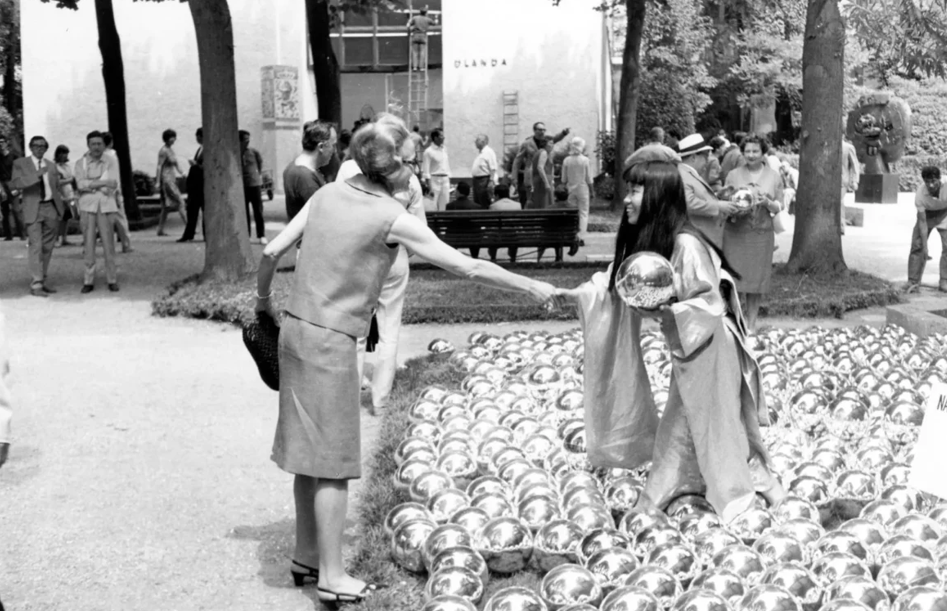 Kusama nella sua installazione «Narcissus Garden» alla 33a Biennale di Venezia, 1966. ©YAYOI KUSAMA