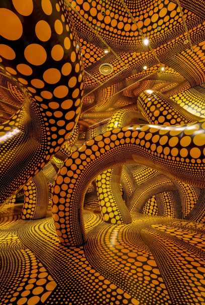 Yayoi Kusama, «The Hope of the Polka Dots Buried in Infinity Will Eternally Cover the Universe», 2019/2024. Gonfiabili in vinile, compensato e ventilatori; dimensioni variabili, vista dell'installazione alla National Gallery of Victoria di Melbourne. © YAYOI KUSAMA