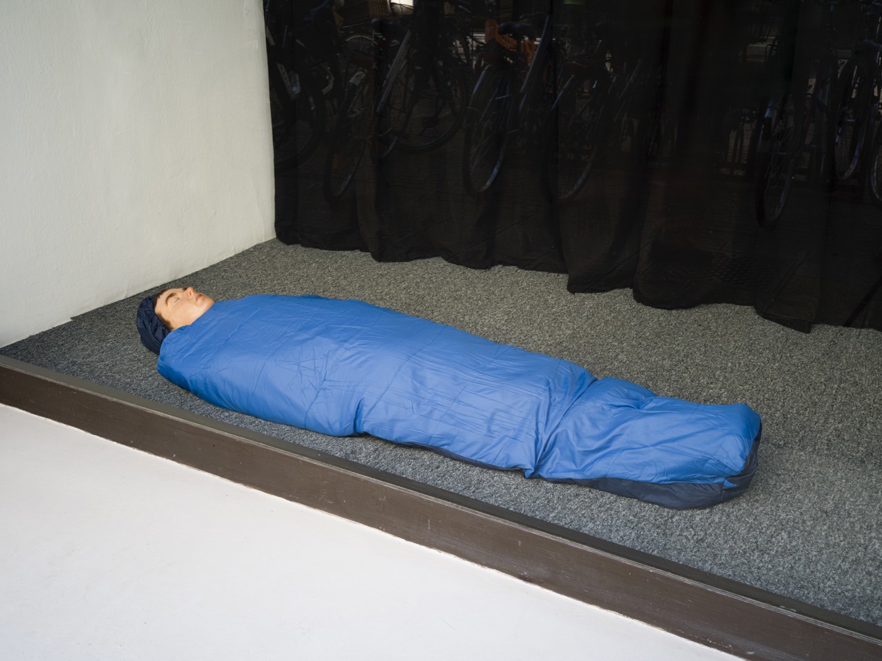 Chi si aspetterebbe di trovare Chris Burden steso a terra, con gli occhi chiusi e avvolto in un sacco, in una vetrina di Bolzano? Eppure, è con questa immagine, evocata da una scultura iperrealista, che si apre «Shine Bright Like a Diamond», la mostra di Jonathan Monk (Leicester, 1969) ad Ar/Ge Kunst di Bolzano fino all’8 novembre, a cura di Francesca Verga e Zasha Colah. Nel segno dell’omaggio all’artista californiano (1946-2015) si snoda tutto il percorso espositivo, sovrapponendo continuamente esercizi di appropriazione a riferimenti personali e improvvisi détournement ironici, a partire dal titolo, ripreso da una canzone di Rihanna e introduzione perfetta per la complessa rete di citazioni che sostiene il progetto.
