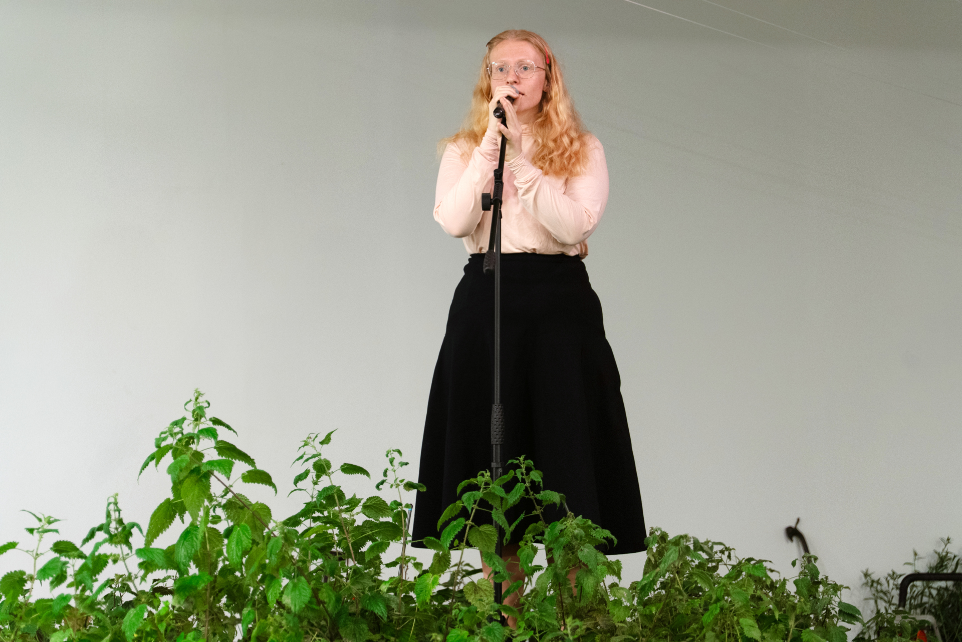 Lilith Performance Studio è uno spazio dedicato alla performance contemporanea, fondato quasi vent’anni fa a Malmö da Elin Lundgren e Petter Pettersson. Nato in un ex quartiere industriale, si distingue per la produzione di opere concepite in stretta collaborazione con gli artisti invitati, che trasformano di volta in volta l’ambiente in un paesaggio esperienziale. Negli anni, Lilith ha ospitato progetti di artisti come Tori Wrånes («Your Next Vacation is Calling», 2014) e Molly Lowe («Game On», 2018), affermandosi come punto di riferimento per una ricerca che attraversa teatro, arti visive e sperimentazione spaziale. In questo contesto, la compositrice e artista lituana Lina Lapelytė, attualmente in residenza a Malmö (Iaspis Residency Grant, autunno 2025), presenta la sua nuova creazione, «Study of Slope». Il progetto, avviato nel 2020 e più volte rimandato a causa della pandemia, è stato mostrato in varie versioni in Europa; al Lilith assume la sua forma originaria, concepita appositamente per lo spazio dello studio. L’installazione performativa ruota attorno a un coro non professionista, composto da persone che si definiscono prive di orecchio musicale. Le loro voci si muovono in un paesaggio di ortiche, piante dalla doppia natura, irritante e curative, che agiscono come attivatori di presenza per lo spettatore: costringono chi osserva a percepire i confini dello spazio e dei corpi, introducendo una dimensione di vulnerabilità fisica e sensoriale nell’esperienza della performance. «Study of Slope» prende ispirazione dal romanzo Living in a Land (2017) di Sean Ashton, un’autobiografia immaginaria costruita interamente sul negativo, in cui il narratore racconta soltanto ciò che non ha fatto o non farà mai. Lapelytė traduce questa «grammatica dell’assenza» in un’esperienza corale di voci «fuori tono», costruendo un fragile equilibrio tra dissonanza e comunione, tra uniformità e deviazione. L’abbiamo incontrata a Malmö, a pochi giorni dalla première di «Study of Slope» (in programma fino al 7 dicembre al Lilith Performance Studio), per parlare della genesi di questo progetto e, più in generale, del suo percorso, fino alla recente partecipazione a Performa 2025 a New York con «The Speech».