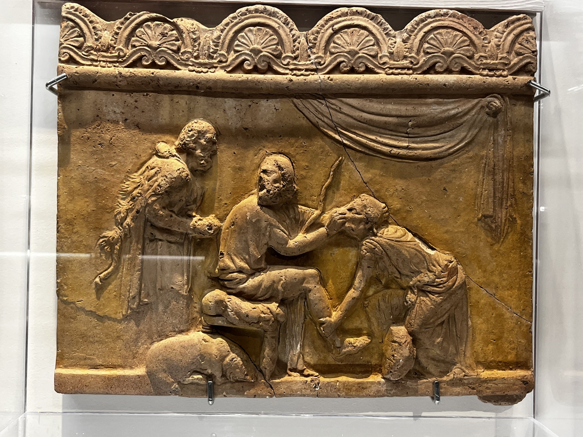 Il riconoscimento di Ulisse da parte di Euriclea, rilievo di coronamento, I secolo d.C., terracotta, Roma, Museo Nazionale Romano Foto: MiC-Museo Nazionale Romano, Archivio Fotografico