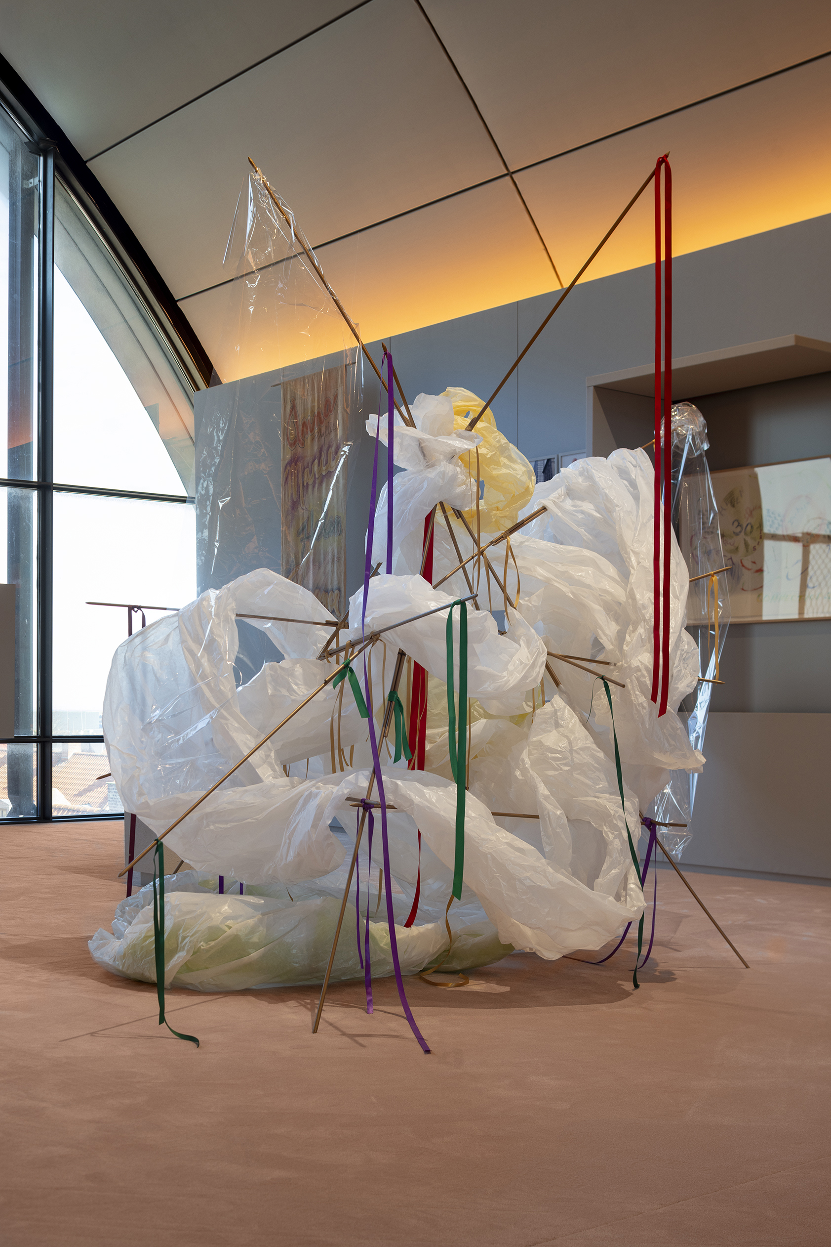 L’approccio adottato dal Maps non è affatto scontato. La suddivisione del progetto in due fasi e in sette atti («Dancing», «Actions», «(Infra)structure», «Psyché», «Messages to the Public», «Social Practice», «On Sanctum») non risponde a un criterio cronologico, ma disegna una mappa concettuale della complessità e delle molteplici declinazioni dell’arte nello spazio pubblico. «Dancing in the Streets (On Power)» è la sezione più articolata e forse la più densa: attraversa linguaggi diversi (dalla performance alla danza, dal gesto politico all’azione collettiva) e raccoglie opere di artisti e artiste che, dagli anni Sessanta in poi, hanno riscritto i confini del fare artistico, spostando l’attenzione dal monumento alla relazione, dal potere alla partecipazione. Al primo piano del museo convivono i lavori di Anna Halprin, Trisha Brown, Mierle Laderman Ukeles, Suzanne Lacy e Pussy Riot con quelli di pionieri come Wolf Vostell, Hélio Oiticica o Franco Mazzucchelli, noto per le sue sculture gonfiabili disseminate negli spazi pubblici italiani negli anni Settanta. Insieme a loro, figure quasi dimenticate come l’artista svizzera Heidi Bucher con le sue «pelli di spazi» («Häutungen», 1970-80), o Rosemary Mayer con i suoi «Temporary Monuments» (1973-77), celebrazioni effimere in tessuto della vulnerabilità e dell’invisibilità, contribuiscono a restituire la forza e la varietà di un’epoca in cui l’arte scende letteralmente in strada per ripensare il proprio linguaggio.