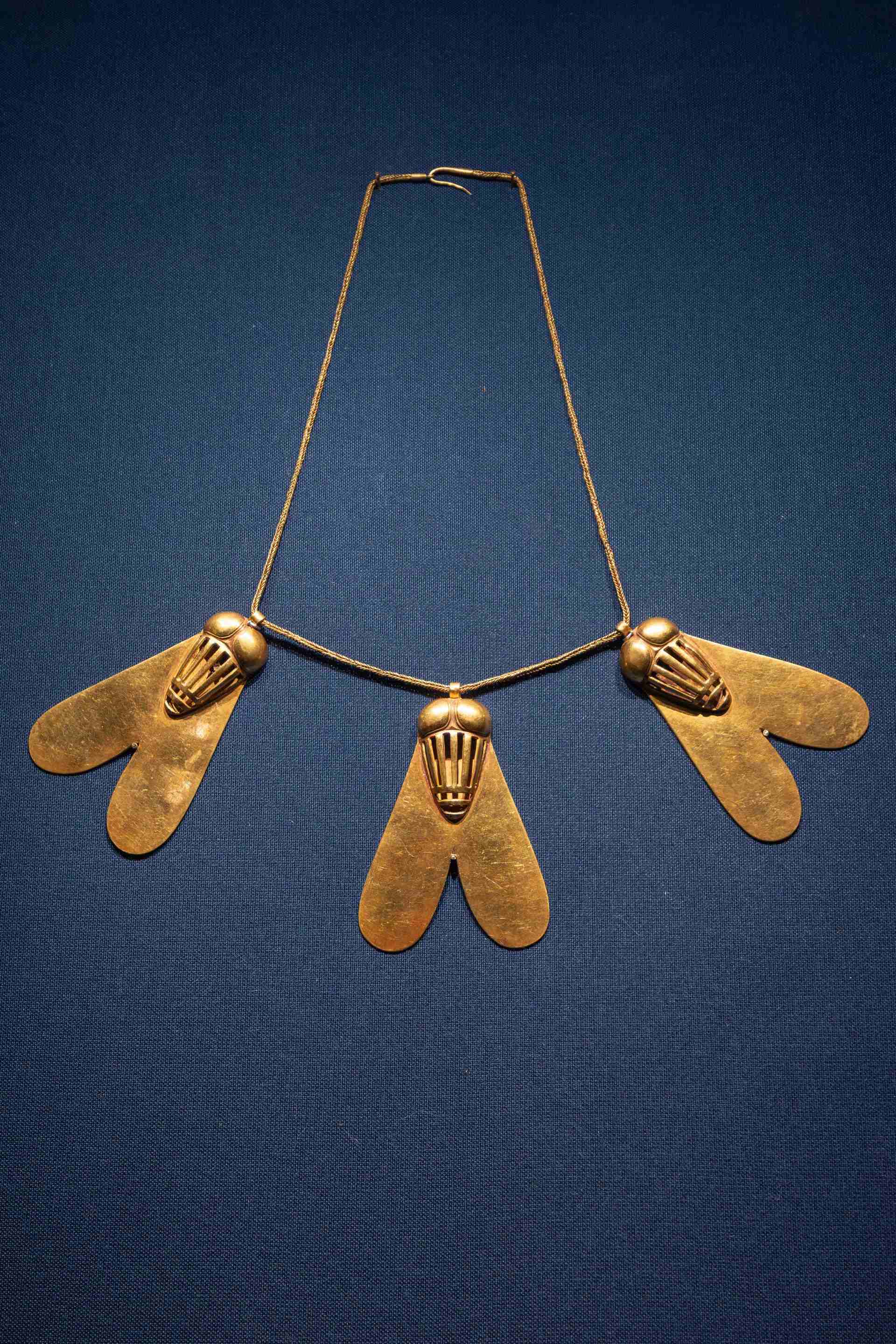 Collana in oro con le mosche, fine XVIII o inizio XVIII dinastia, Nuovo Regno, dalla Tomba della regina Ahhotep II, Dra Abu el-Naga, Riva ovest di Luxor, Museo di Luxor. Foto Monkeys Video Lab