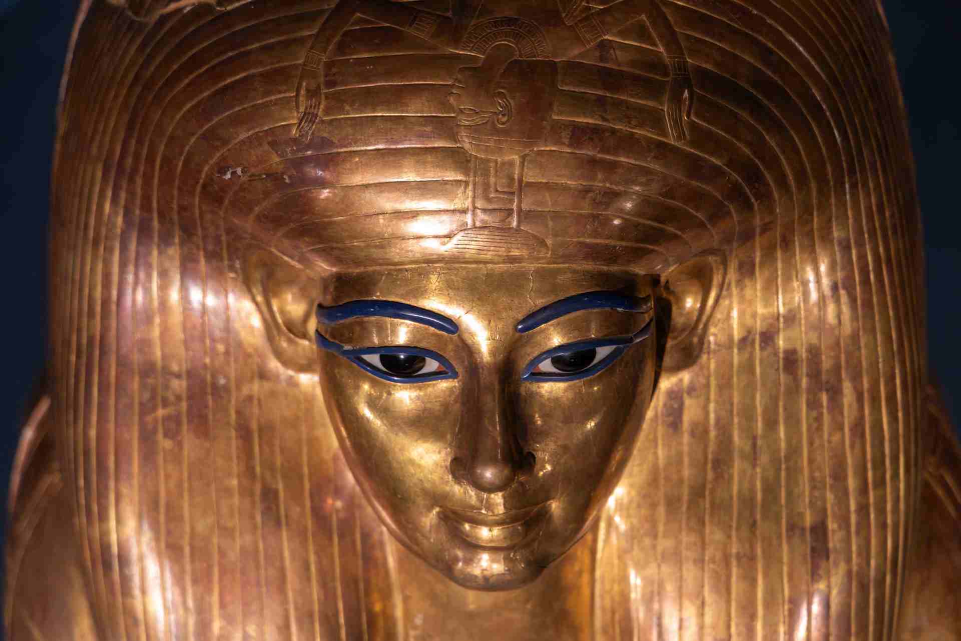 Sarcofago antropoide esterno di Tuya, particolare, XVIII dinastia, Nuovo Regno, dalla Tomba di Yuya e Tuya, Valle dei Re, Luxor, Il Cairo, Museo Egizio. Foto Monkeys Video Lab
