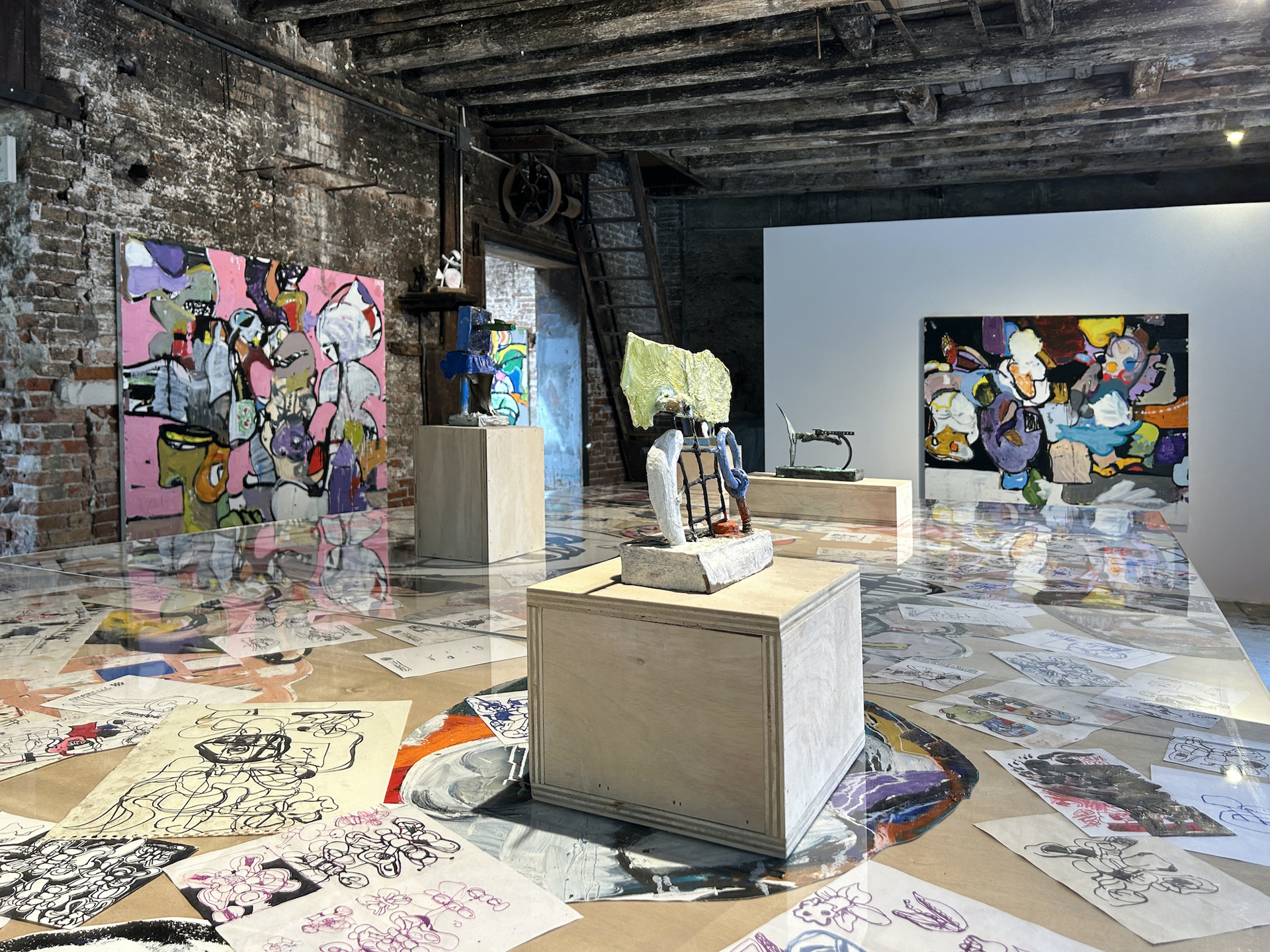 Sulla strada verso l’Arsenale s’incontra il Montenegro, ospitato nel complesso dell’Ospedaletto (Castello 6691), con un progetto di Darja Bajagic che lavora sulla storia dell’isola montenegrina di Mamula con la sua fortezza costruita nel 1853 dal generale austro-ungarico Lazar Mamula, trasformata in campo di concentramento da Mussolini, oggi hotel di lusso. La Bosnia Erzegovina, poco lontano (in Palazzo Zorzi, sede dell’Unesco, Castello 4930, non distante dalla Fondazione Querini Stampalia) punta su Stjepan Skoko e la sua «The Measure of the Sea». Per la Repubblica di San Marino (alla Fucina del Futuro in Calle San Lorenzo, Castello 5063B) il team di FR Istituto d’Arte Contemporanea ha scelto un artista americano: Eddie Martinez, pittore e scultore che annovera De Kooning tra i suoi maestri ideali, con la sua personale «Nomander». Nell’ex officina di un fabbro, sul grande tavolo all’inizio del percorso, si dispiega il suo mondo, una sorta di archivio concettuale composto da una grande quantità di disegni, fatti perlopiù in viaggio, da cui originano i motivi ricorrenti nei dipinti esposti accanto alle sculture realizzate con materiali di riciclo. La Lituania è ospitata nella Chiesa di Sant’Antonin (Castello 3477) dove «Inflammation» costruisce un dialogo tra la grande installazione di Pakui Hardware e le sculture in alluminio e vetro fuso di Marija Terese˙ Rožanskaite˙ (1933-2007), sopravvissuta alla deportazione in Siberia: una «metafora del danno sistemico inflitto all’umanità e al pianeta».