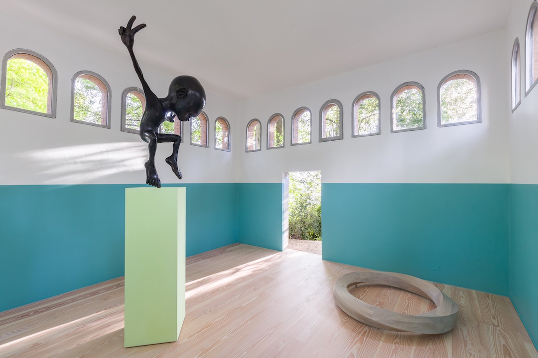 Il Padiglione della Corea presenta un panorama idealmente vastissimo in uno spazio quasi completamente vuoto: Koo Jeong A ha costruito un ritratto olfattivo corale della penisola coreana. L’artista, in collaborazione con esperti profumieri, ha sintetizzato più di 600 descrizioni di ricordi olfattivi che coreani e non avevano del Paese in 17 fragranze esperibili negli spazi del Padiglione. In un primo momento, appena entrati nello spazio espositivo, si percepisce un unico odore, con picchi più intensi in alcune zone, ma con il tempo, e con un leggero sforzo di concentrazione, il nostro naso inizia a distinguere le varie fragranze. I profumi sono rilasciati nell’aria da piccole sfere nascoste nelle travature. In una mostra così eterea e raccolta, in cui la mente può connettersi in assonanza con i ricordi di centinaia di altre mentre guardiamo le piante dei Giardini dalle ampie vetrate del Padiglione, sembrano un po’ fuori luogo la scultura di un personaggio a braccia spalancate e delle panchine di legno a forma di anello di Möbius.