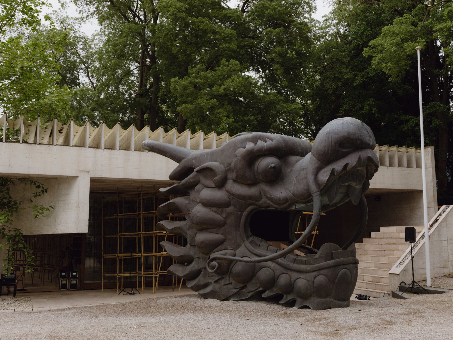 Il Padiglione dei Paesi Nordici presenta uno dei lavori più riusciti dell’intera Biennale, un progetto di stratificata complessità di media, influenze e narrazioni multilinguistiche, in un’armoniosa unione tra folklore, tradizioni e contemporaneità. «The Altersea Opera» è un’opera lirica in tre atti scritta e diretta dall’artista svedese Lap-See Lam, con musiche del compositore norvegese Tze Yeung Ho e costumi dell’artista finlandese Kholod Hawash, con la collaborazione di attori, musicisti e cantanti liriche. Il progetto è ispirato da una storia surreale ma vera: nel 1991, l’imprenditore svedese-cinese Johan Wang costruisce un’enorme nave ristorante adornata da un’enorme testa di drago a prua e da una coda fiammeggiante a poppa (elementi recuperati da Lap-See Lam e che troviamo ai due ingressi del Padiglione), con cui parte alla volta di Shanghai, toccando nel tragitto varie città europee. L’impresa fallisce, e la nave viene riconvertita in casa dei fantasmi per un luna park di Stoccolma. L’artista unisce queste suggestioni in una storia in cui la versione futura e passata di Lo Ting, un personaggio metà umano e metà pesce del folklore della Cina meridionale, intraprendono un viaggio verso Porto Profumato d’Incenso (la traduzione letterale di «Hong Kong»).