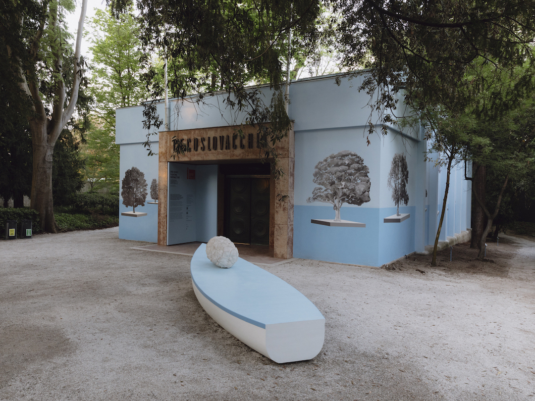 La collaborazione è anche alla base dei progetti presentati dal Padiglione della Repubblica Ceca e della Repubblica Slovacca: solitamente i due Paesi tengono le mostre a bienni alterni; quest’anno, in vista di una ristrutturazione dello spazio espositivo, hanno deciso di esporre insieme. L’artista ceca Eva Kotátková presenta l’installazione «Il cuore di una giraffa in cattività pesa dodici chili in meno» all’interno del Padiglione, mentre il progetto «Floating Arboretum» dello slovacco Oto Hudec si sviluppa sulle pareti esterne. Coerentemente, il lavoro di Kot’átková consiste in un metaforico viaggio interiore che si formalizza nella riproduzione di grosse sezioni percorribili del collo della giraffa Lenka, la prima giraffa portata in Cecoslovacchia dal Kenya e sopravvissuta in cattività per soli due anni. Dipinti sulle pareti esterne del padiglione, Hudec presenta un archivio di alberi in pericolo, consultabile online tramite la scansione di un Qr code.