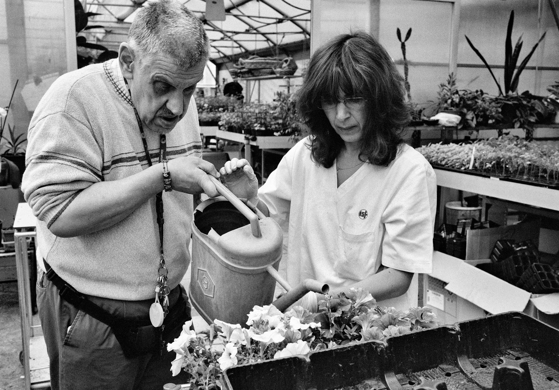 Curata da Giovanna Calvenzi, l’esposizione riunisce 60 fotografie di Gianni Berengo Gardin, Enrico Zuppi e Marianna Sambiase, articolandosi in tre sezioni. Il percorso si apre con il bianco e nero di Berengo Gardin (1930-2025), chiamato nel 2011 a raccontare la quotidianità della Casa: terapie, scuola, relazioni, momenti di gioco. Il suo sguardo partecipe restituisce la trama di legami che sostiene la vita della Fondazione.