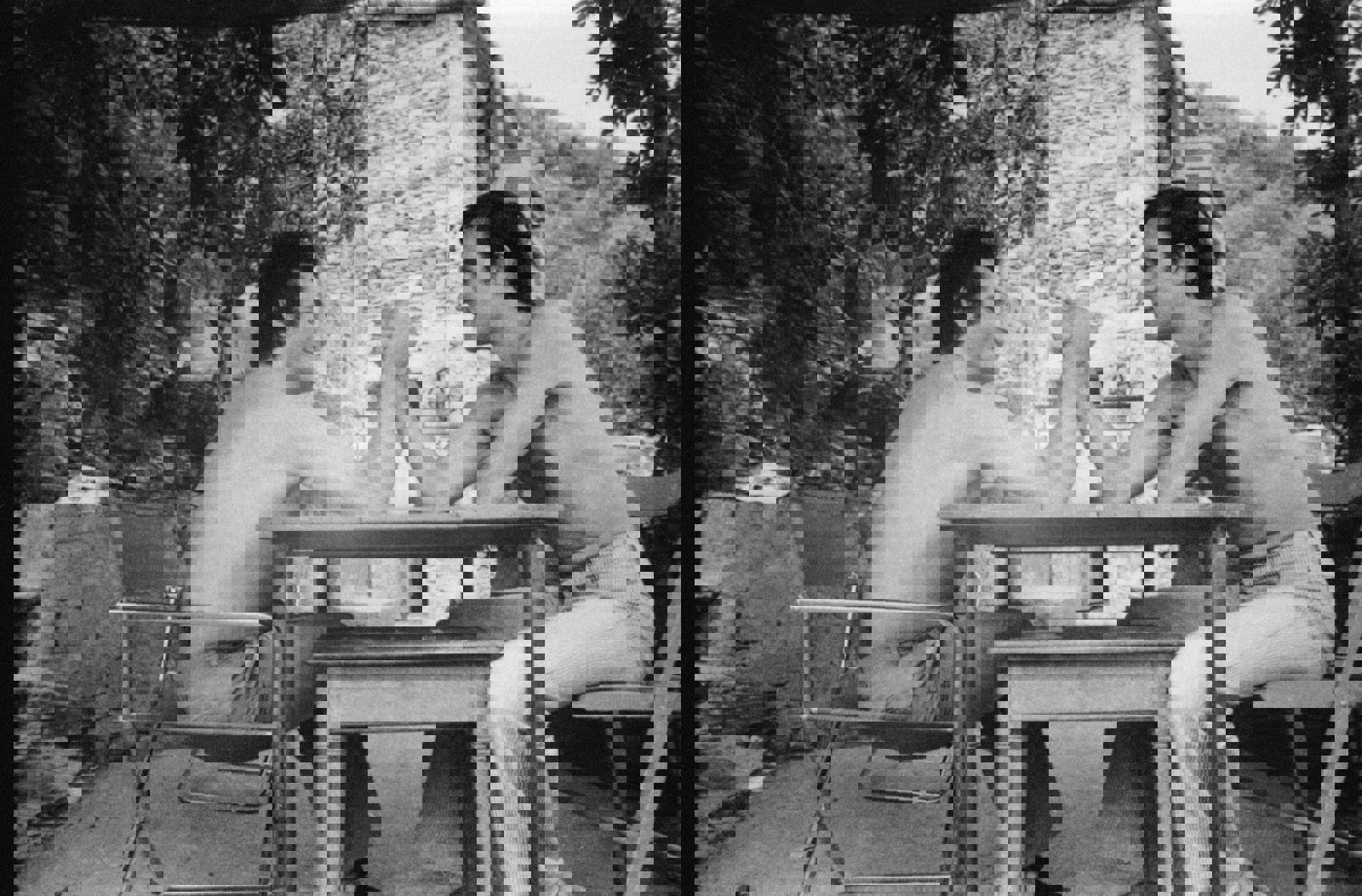 Da sinistra, Salvo e Alighiero Boetti nella sua casa di Prevo. Cortesia di Agata Boetti