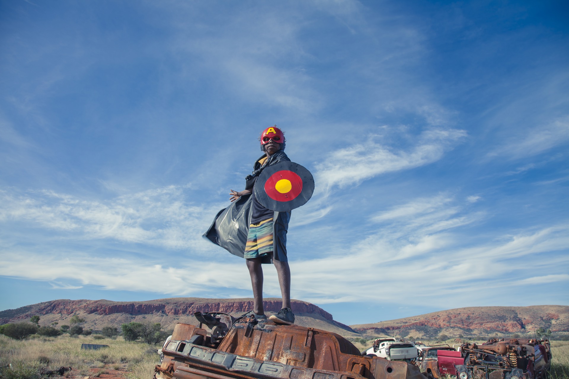 Tony Albert (Kuku Yalanji), David Charles Collins e Kirian Lawson, «Warakurna Superheroes #1», dalla serie «Warakurna Superheroes», 2017. Courtesy of the artists/Sullivan+Strumpf