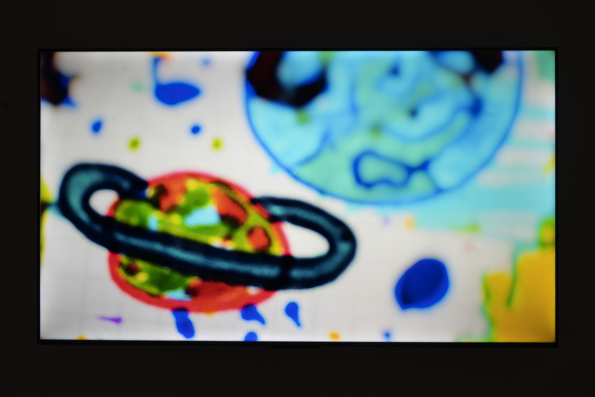 Boccioletti ci mette davanti a una riduzione a formati astratti delle visioni dell’infanzia: la citazione del titolo della mostra serve solo da inganno per condurci in un intricato labirinto di sollecitazioni emotive e visive, rendendo manifesta la volontà di utilizzare l’espediente dell’infanzia come mezzo per indicarne la struggente assenza e la falsa profezia. Quello che resta è sfocato, ruvido, iniquamente ammiccante. La manipolazione delle immagini prese dai disegni, il suono, anch’esso fortemente sofisticato, e i peluche compressi insistono su azioni che vivono di un presente in cui il ricordo e le aspettative non possono più essere ricordate con tenera nostalgia, ma osservate con dura chiarezza come presagi di una deriva collettiva.