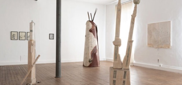 In effetti, l’opera di Bersezio si distingue per una fedeltà radicale al medium, che richiama quella «specificità del linguaggio» teorizzata da Clement Greenberg come condizione dell’arte autentica. Le sue sculture - essenziali, talvolta monumentali - non raccontano storie, ma costruiscono presenze: forme che insistono nello spazio, trattenendo un’energia silenziosa e chiedendo allo spettatore un coinvolgimento attivo. La mostra braidesa presenta un nucleo significativo di lavori degli anni Novanta, con aperture ai Duemila: sculture in legno intrecciato e corde nautiche, bassorilievi, disegni e collage della serie «Paesaggi nord-occidentali». In queste opere emerge un sapere manuale antico, quasi arcaico, che affonda le radici nella biografia dell’artista: il nonno bottaio, l’infanzia trascorsa tra legni e utensili, il gesto primario del piantare chiodi che ritorna, trasformato, nella pratica scultorea.