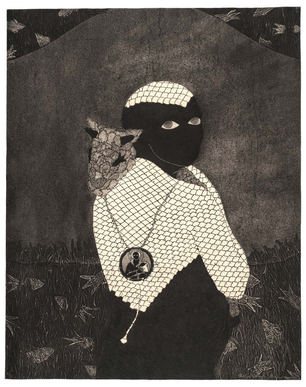 Belkis Ayón (L’Avana, 1967-99) è stata una delle artiste più importanti di Cuba (un’ampia scelta di suoi lavori erano esposti all’Arsenale di Venezia in occasione della 59ma Esposizione Internazionale d’Arte della Biennale di Venezia intitolata «Il latte dei sogni» e curata da Cecilia Alemani) e la sua breve ma intensa carriera è iniziata a metà degli anni Ottanta, sviluppando subito un interesse per i miti afrocaraibici. Le interpretazioni che Ayón ha dato di questi miti parlano di appartenenza, silenzio, potere e resistenza, concentrandosi particolarmente sul personaggio femminile Sikán che, nonostante il suo ruolo centrale nella mitologia Abakuá, una confraternita segreta maschile afrocubana, è stata esclusa dalla pratica religiosa. Punita per aver scoperto un segreto riservato agli uomini, diventò simbolo di sacrificio e ingiustizia.
