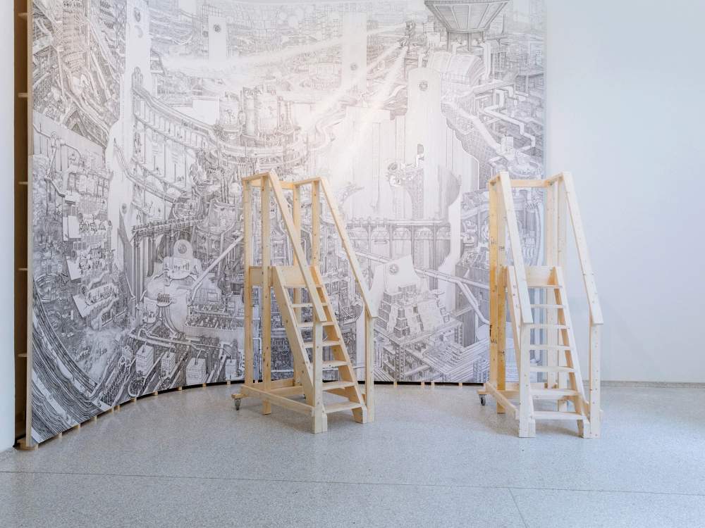 Tanto tecnico e pragmatico quanto metaforico ed evocativo. Al centro dell’allestimento gli elementi connettivi che strutturano città ed edifici in termini di flussi economici e idraulici. Ne risulta un Padiglione composto: un po’ magazzino edile con atmosfere piranesiane (bellissimi i grandi disegni) e ardite sovrapposizioni disciplinari. Tutto scorre.